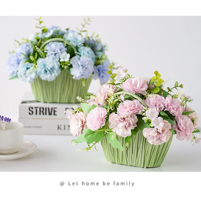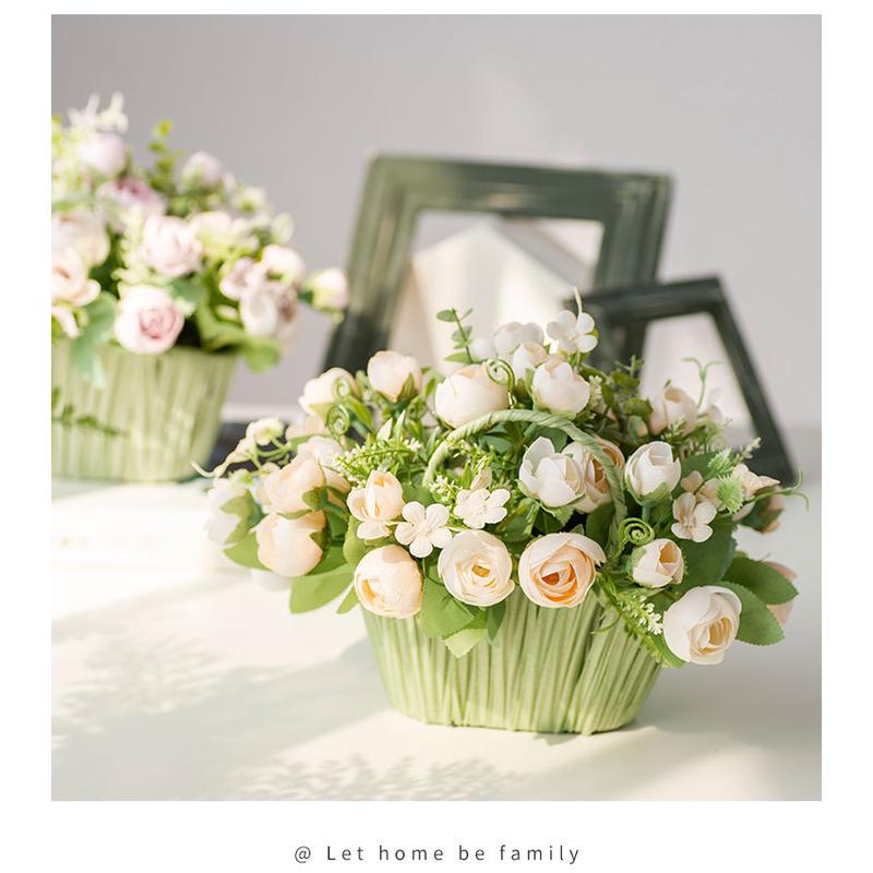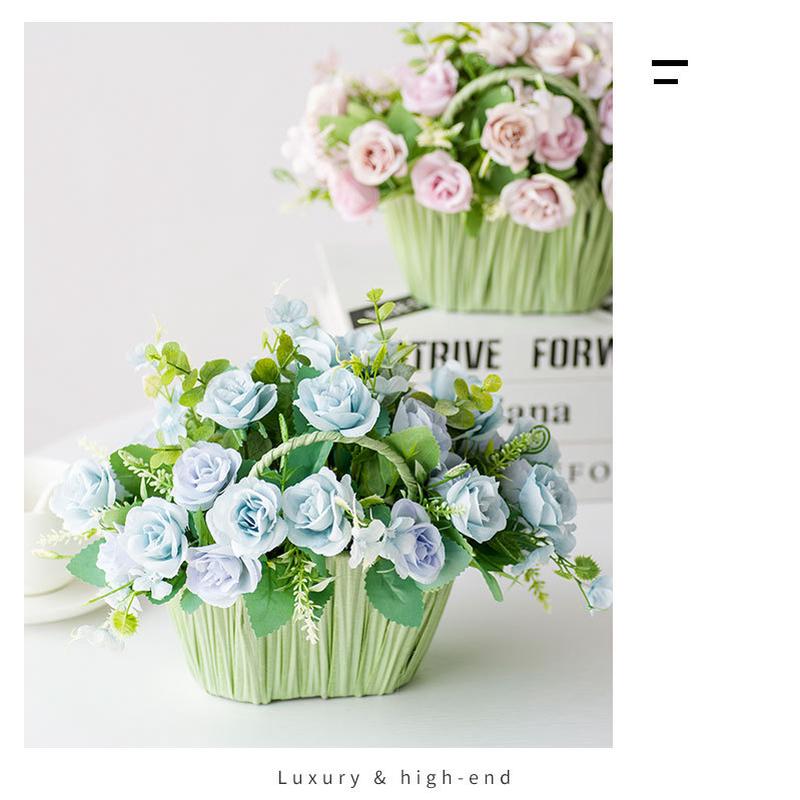 塑料花假花装饰品客厅仿真花家居创意摆设手提草编柳编小花篮摆件