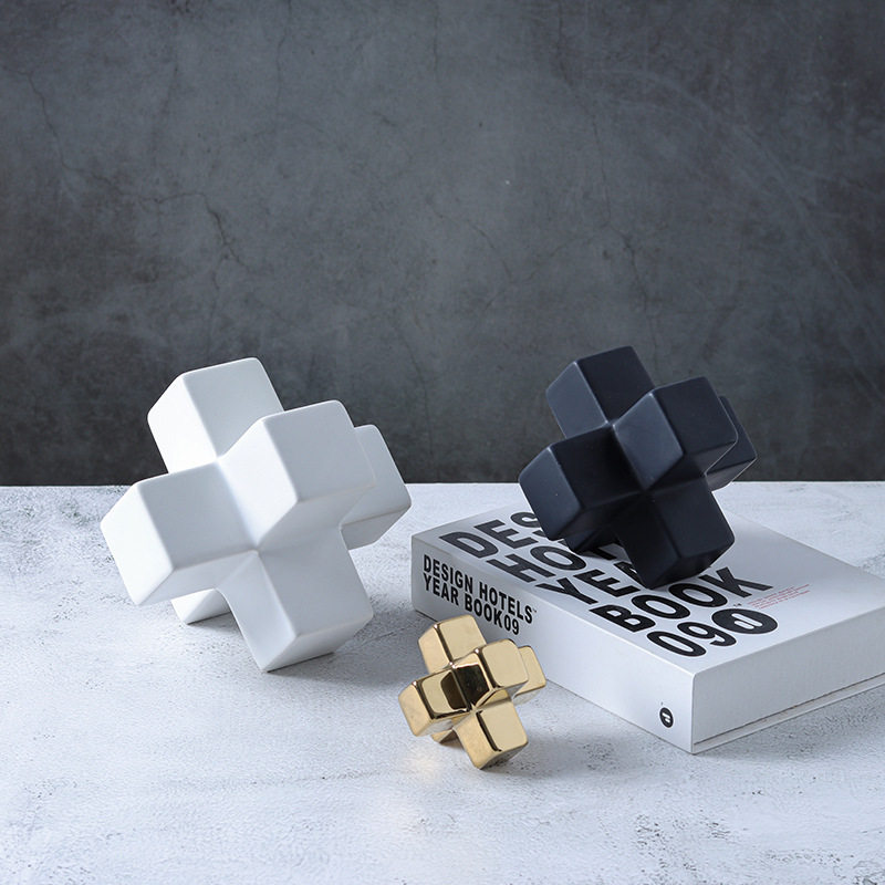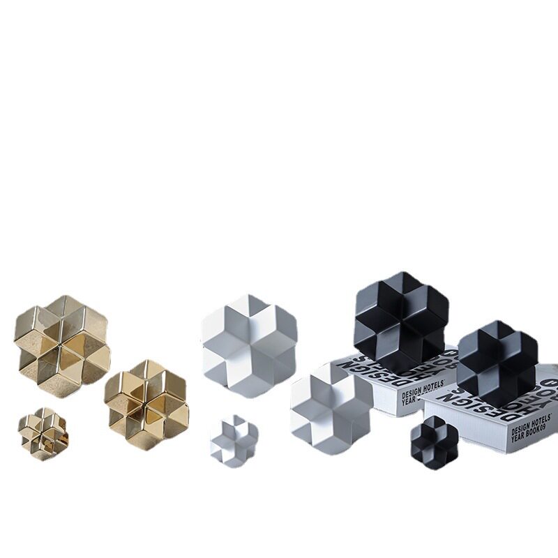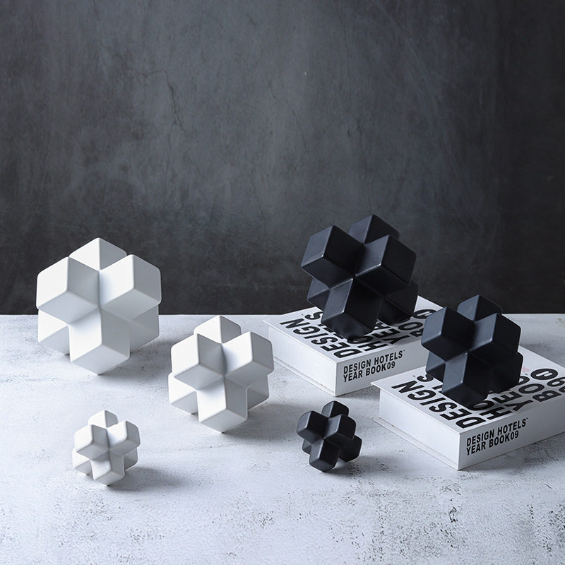 高端现代轻奢极简几何方块立方体五角星陶瓷摆件酒店样板房装饰品