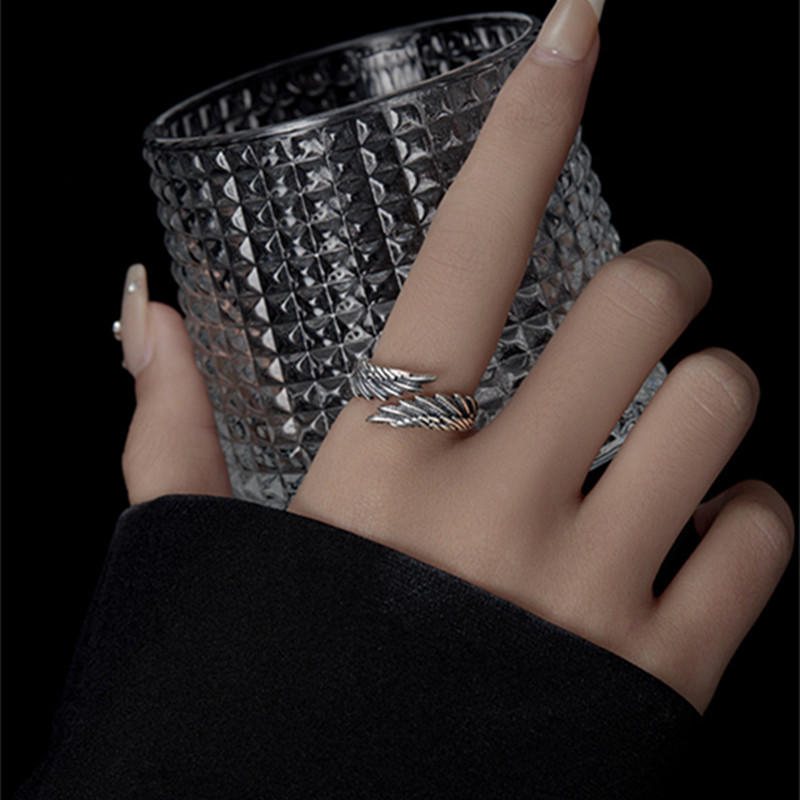 复古轻奢天使翅膀羽毛戒指男士简约时尚不锈钢开口高级感钛钢指环