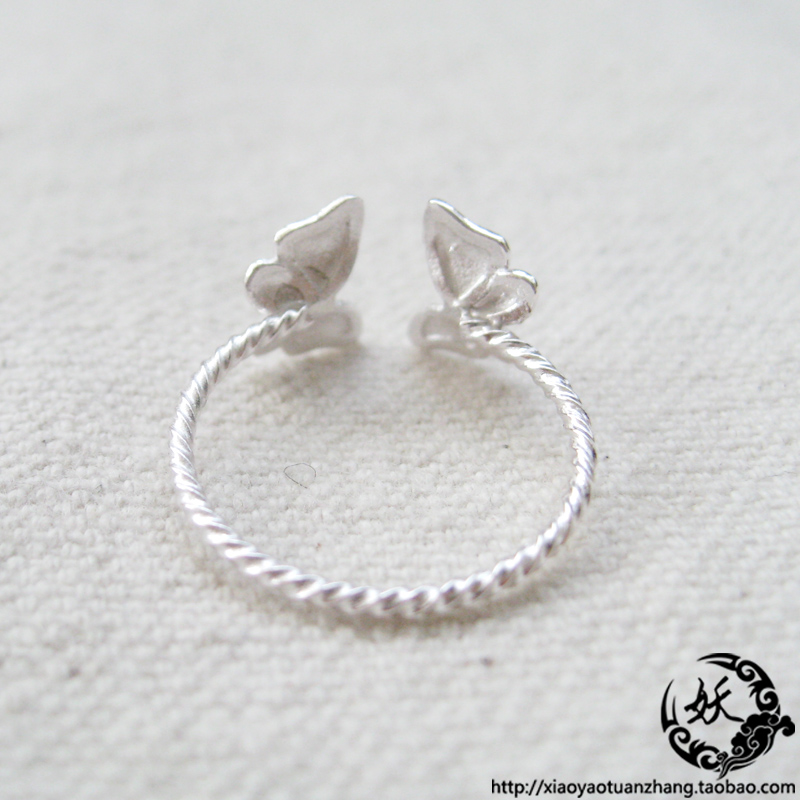 925纯银戒指 韩版时尚手工银 女款 小蝴蝶 蝶舞 开口可调节 细款