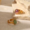 防水不锈钢18K金椭圆绿色/紫色半宝石开口戒指摩登首饰指环饰品女