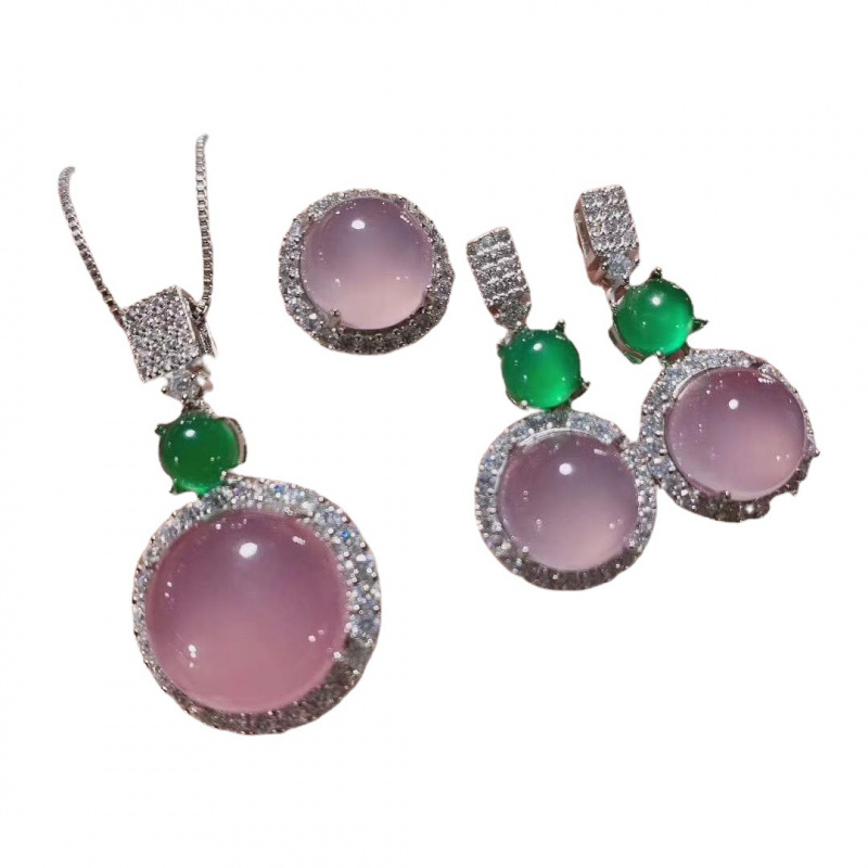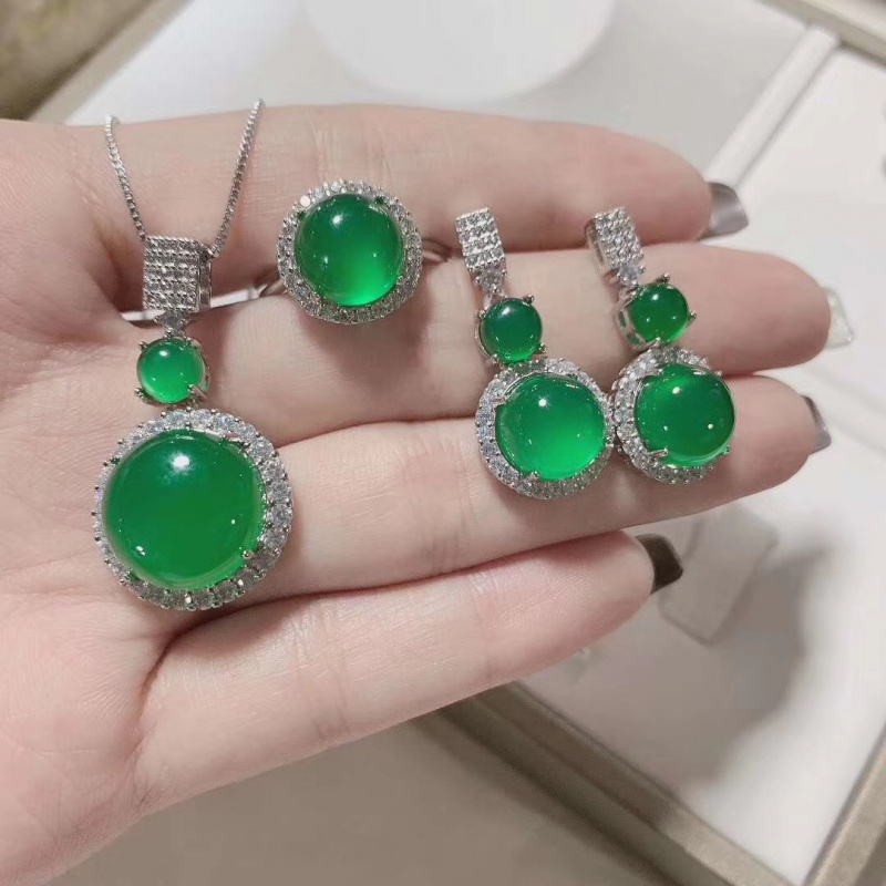 天然绿玉髓吊坠戒指耳环三件套装首饰品女礼物珠宝玉石耳坠项链坠