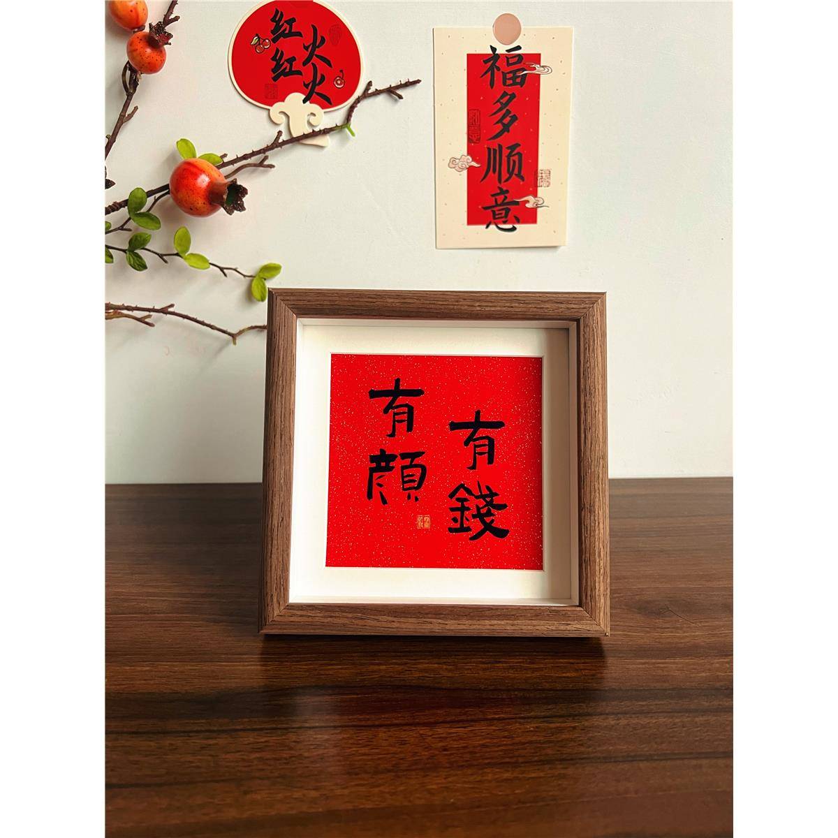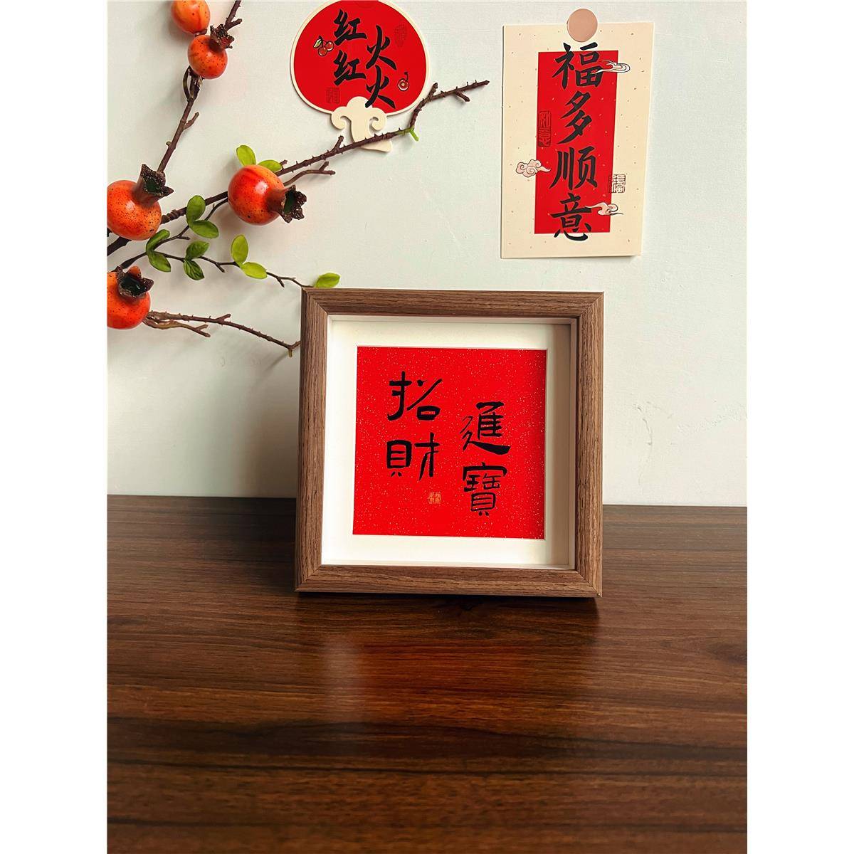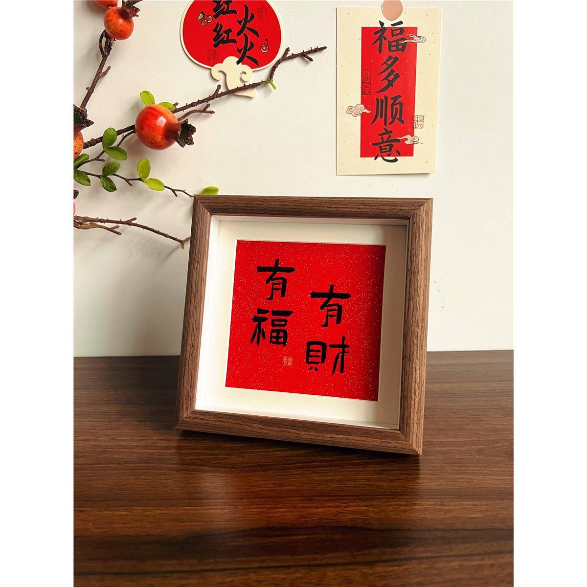 新中式红色喜庆相框摆台祝福书法文字摆画入户玄关桌面装饰摆件