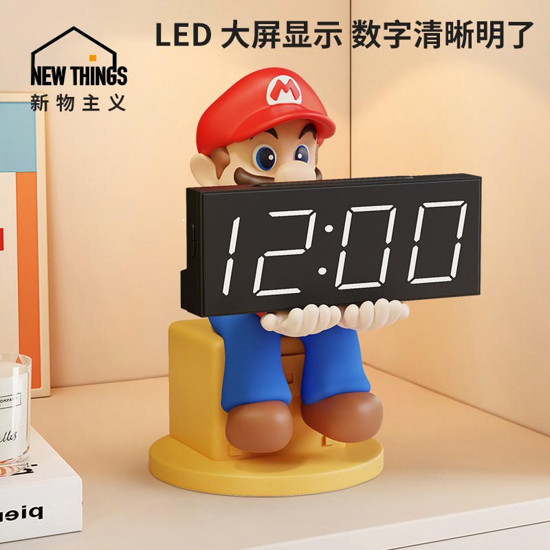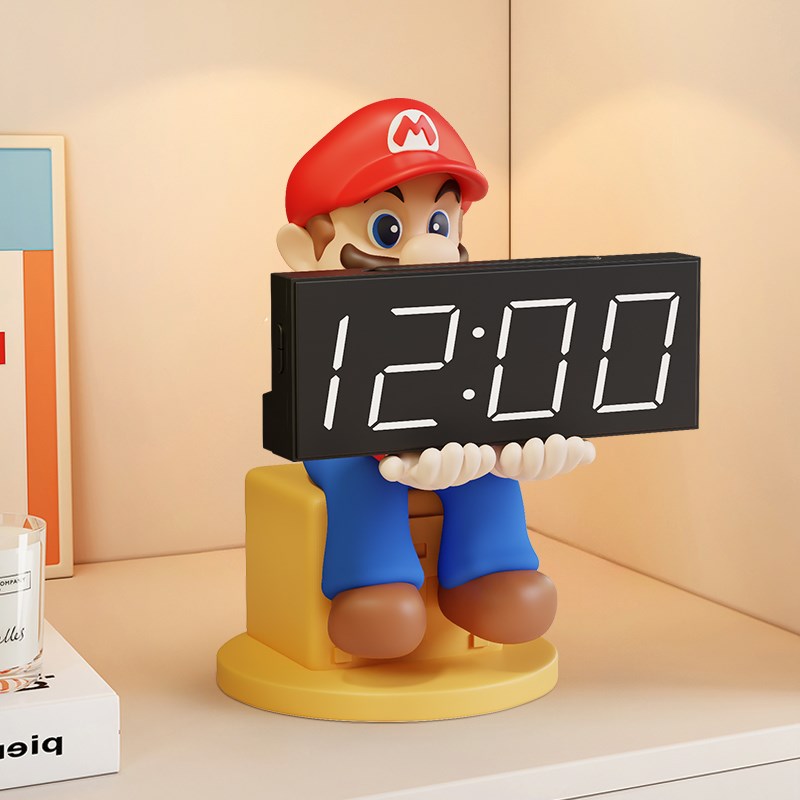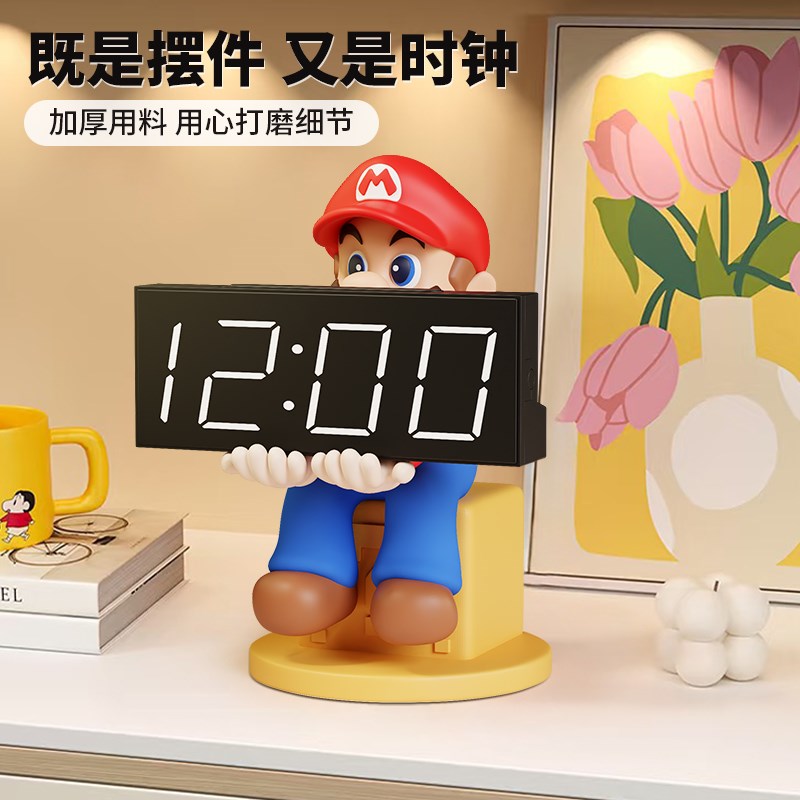 马里奥数字电子时钟玄关摆件卧室钟表桌面摆放式闹钟电视柜装饰品