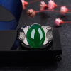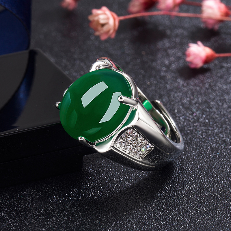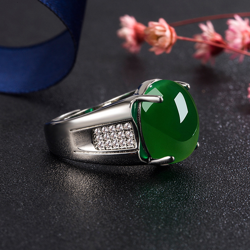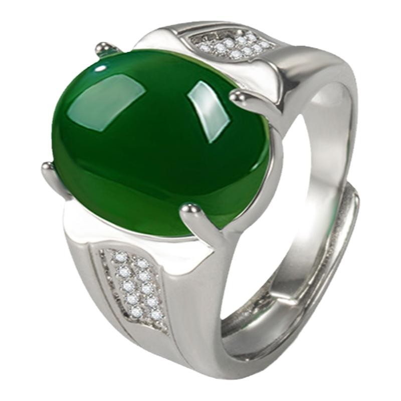 925纯银时尚复古活口绿色玉髓轻奢小众高级感男玛瑙宝石戒指夸张