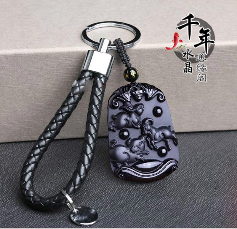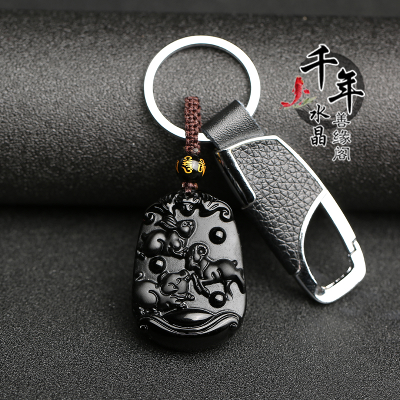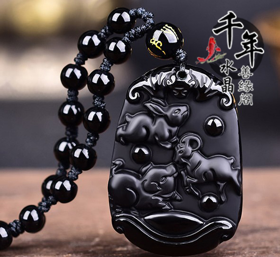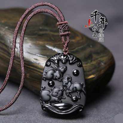 2026年天然黑曜石属猪兔羊黑曜石亥卯未三合贵人吊坠磨砂款