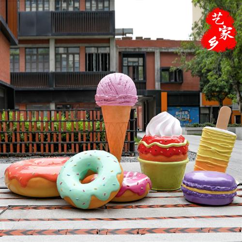 网红甜品店装饰摆件仿真冰淇淋雪糕商场甜甜圈大型玻璃钢雕塑模型