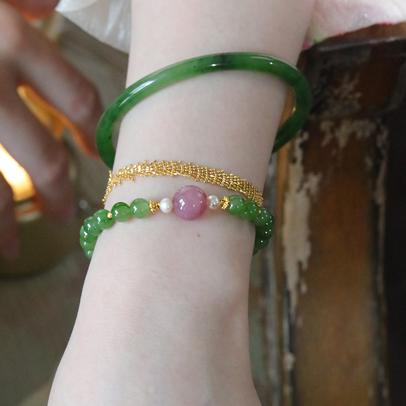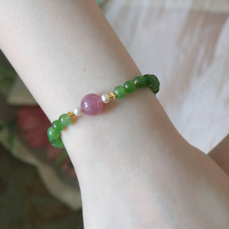 SUMOJEWEL【宫墙柳】新中式复古风粉绿撞色原创设计碧玉手链气质