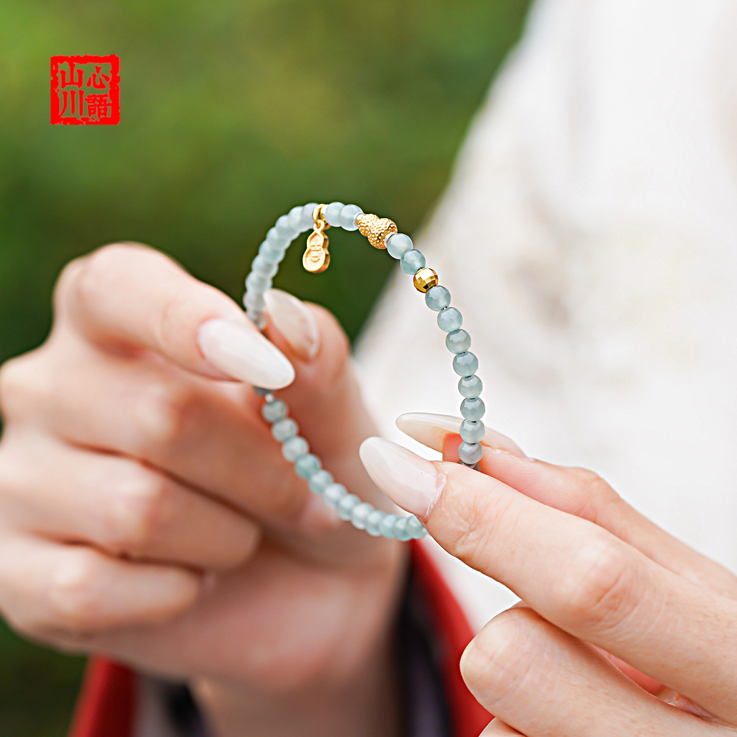 危地马拉翡翠手串天然蓝水蓝色纯银葫芦手链危料水晶玉石玉髓珠串