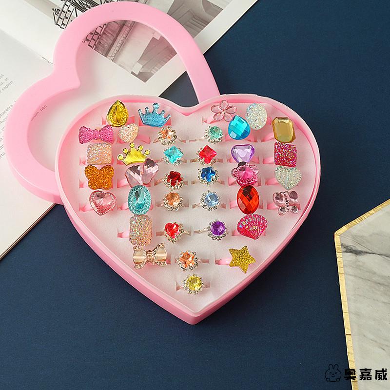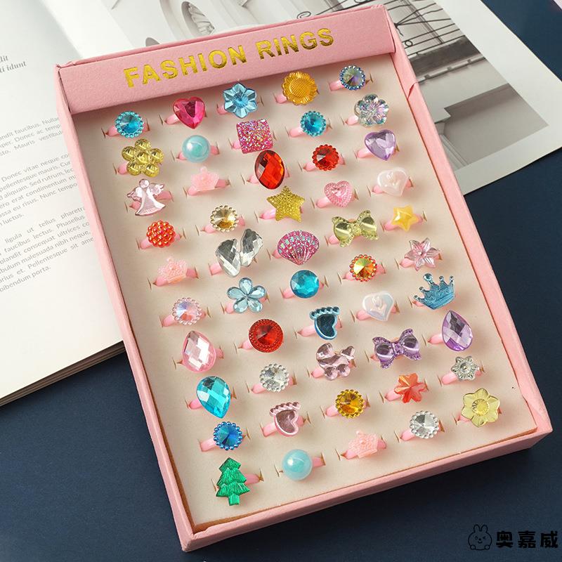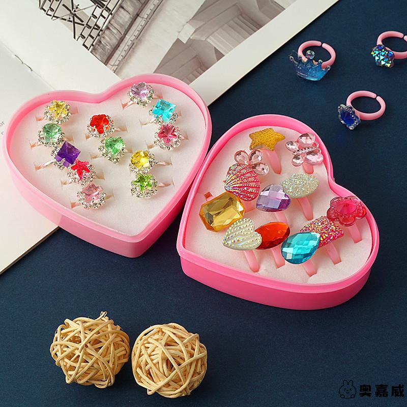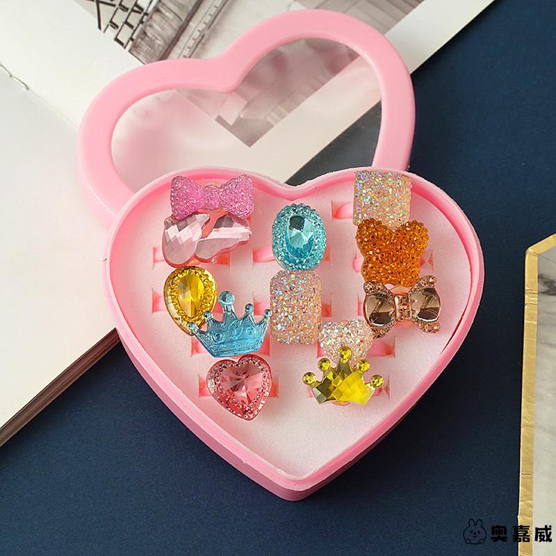 儿童戒指女童卡通公主塑料可调节小女孩宝水晶宝石钻石玩具饰品
