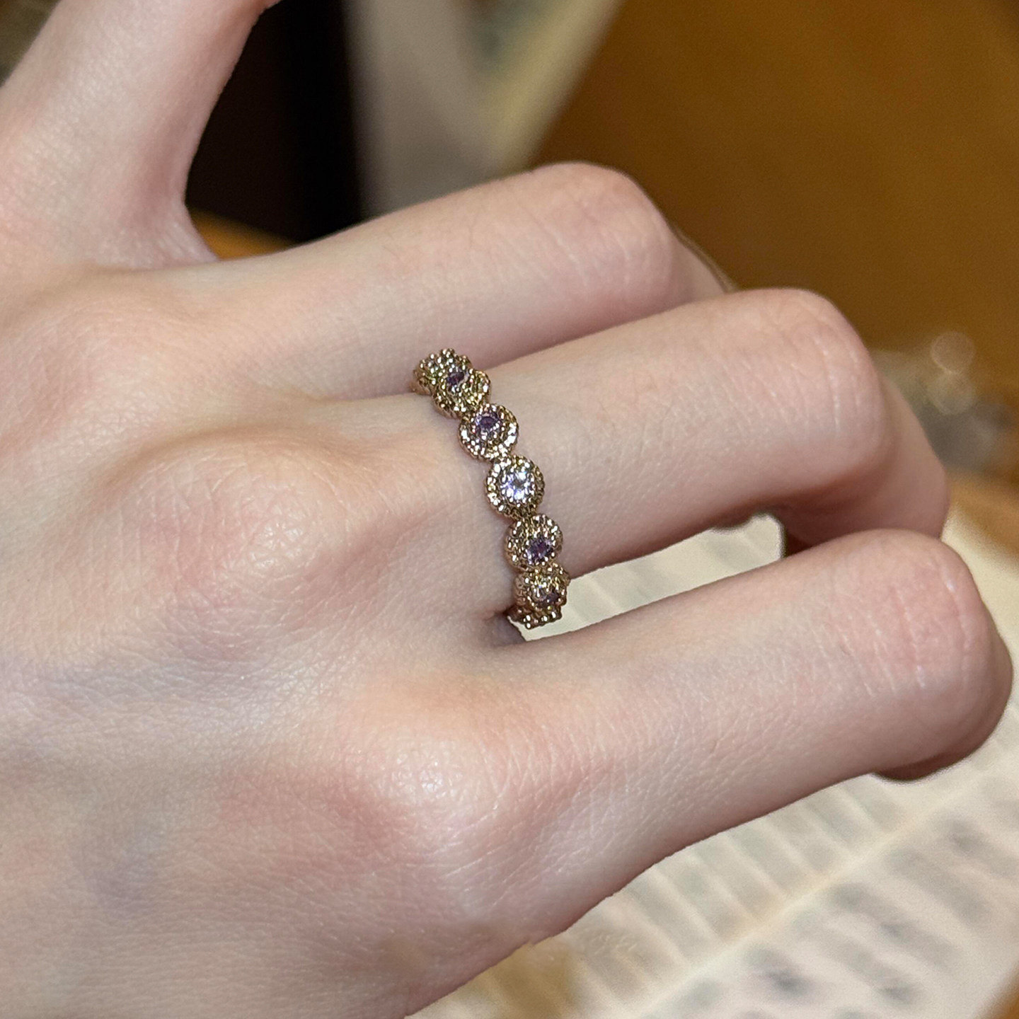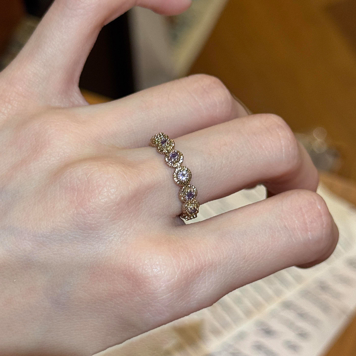 S925纯银复古紫色闪钻戒指女轻奢高级感独特气质显手细轻巧食指戒