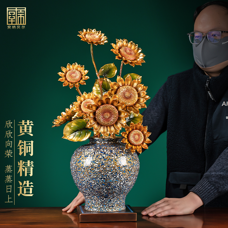 蒸蒸日上向日葵铜摆件客厅玄关入户装饰开业搬家新房乔迁之喜礼物