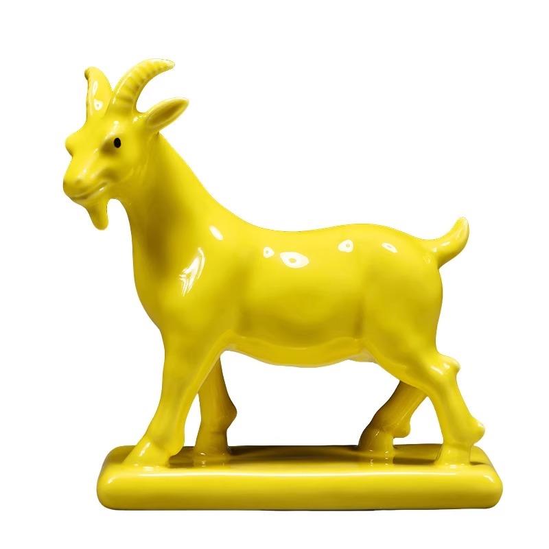 黄色陶瓷羊摆件十二生肖山羊的吉祥物补角化解家居客厅装饰工艺礼