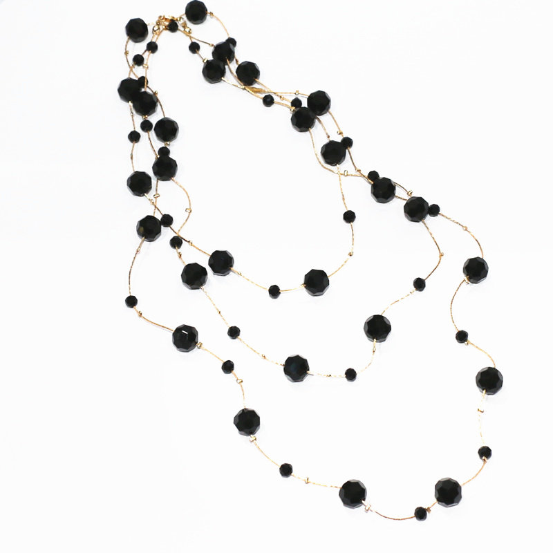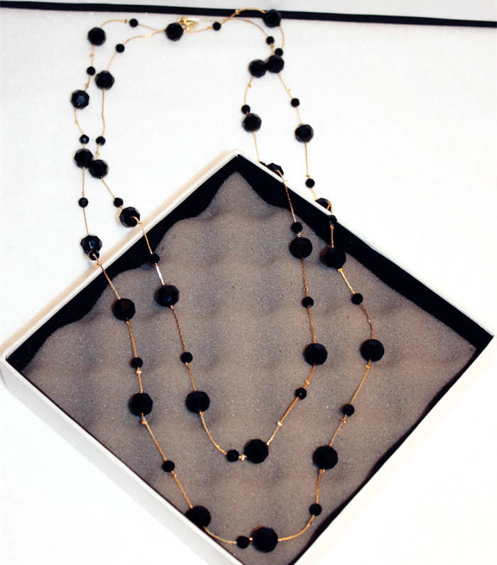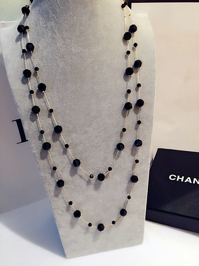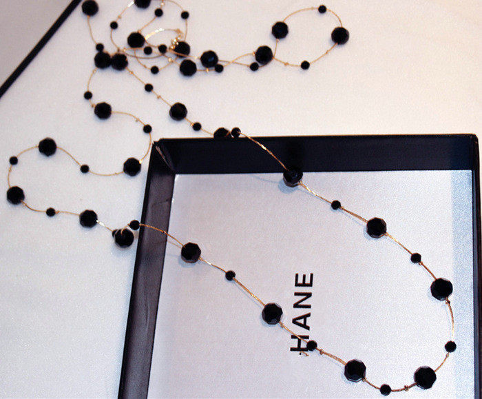韩国时尚气质黑色水晶长款毛衣链 欧美个性双层项链吊坠新款天然