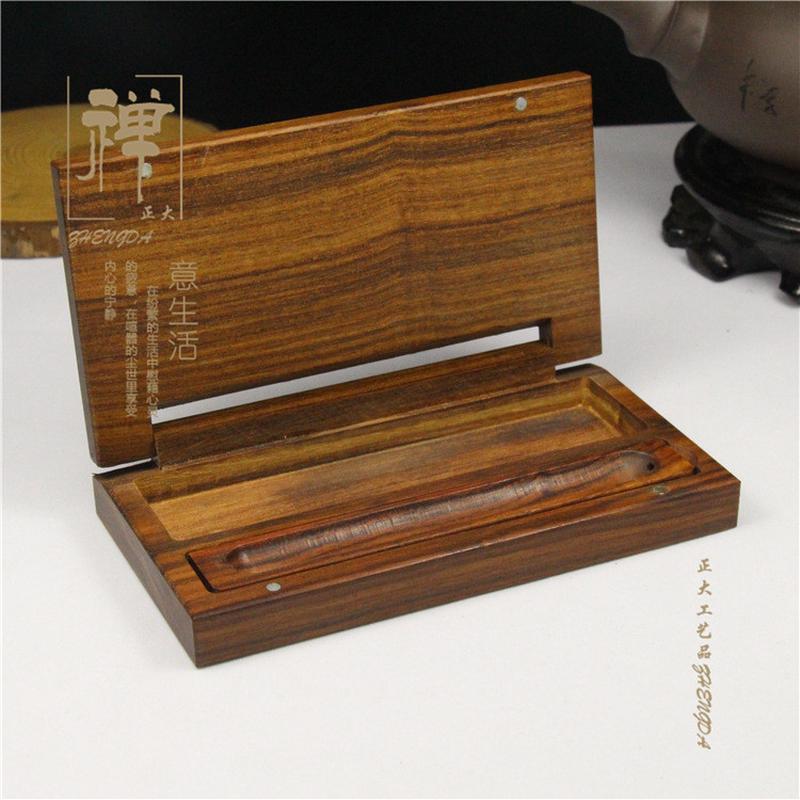 正大 紫光檀木卧香盒 便携式实木翻盖香炉 立式香炉 线香筒线香盒