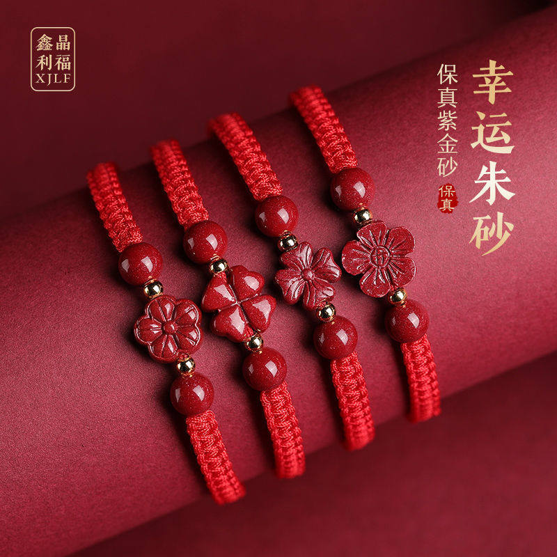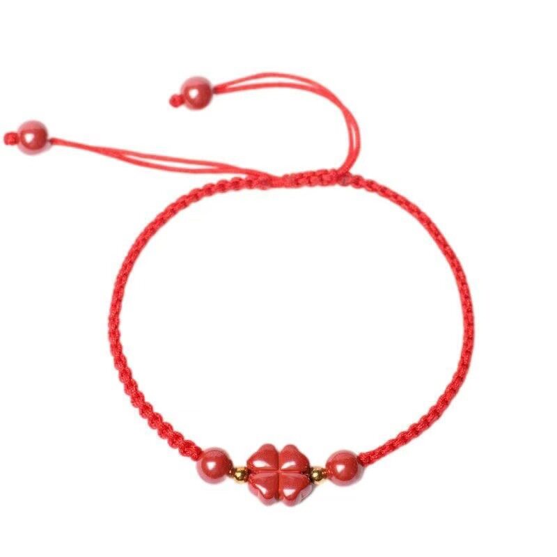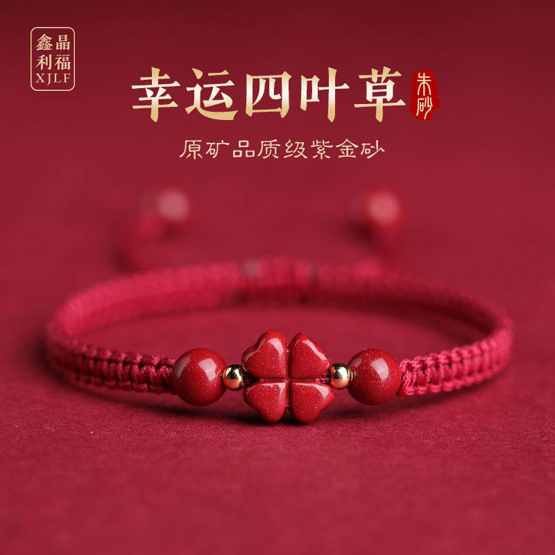 朱砂古风编织手绳情侣红绳手链紫金砂本命年祈福幸运草男女款手饰
