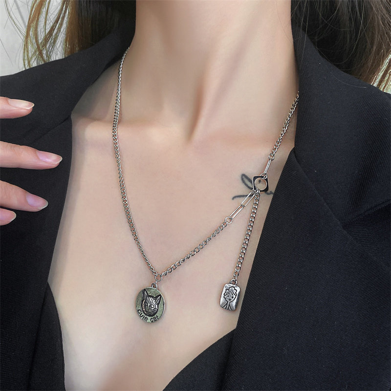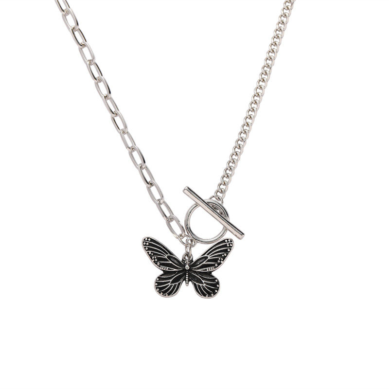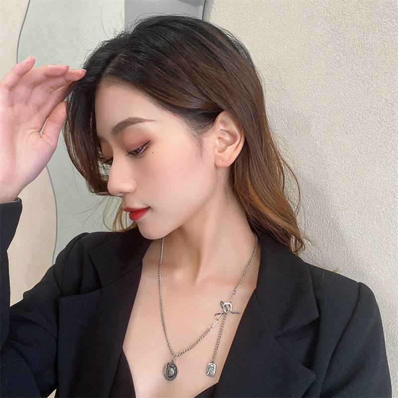 高级设计感欧美做旧蝴蝶结项链锁骨链时尚简约小动物手作毛衣链女