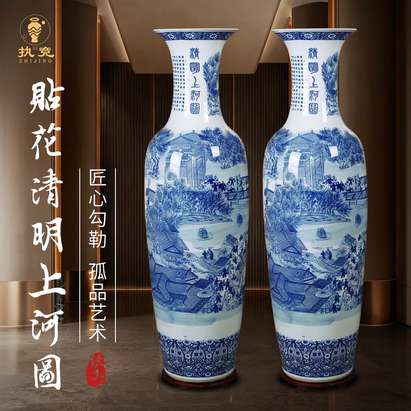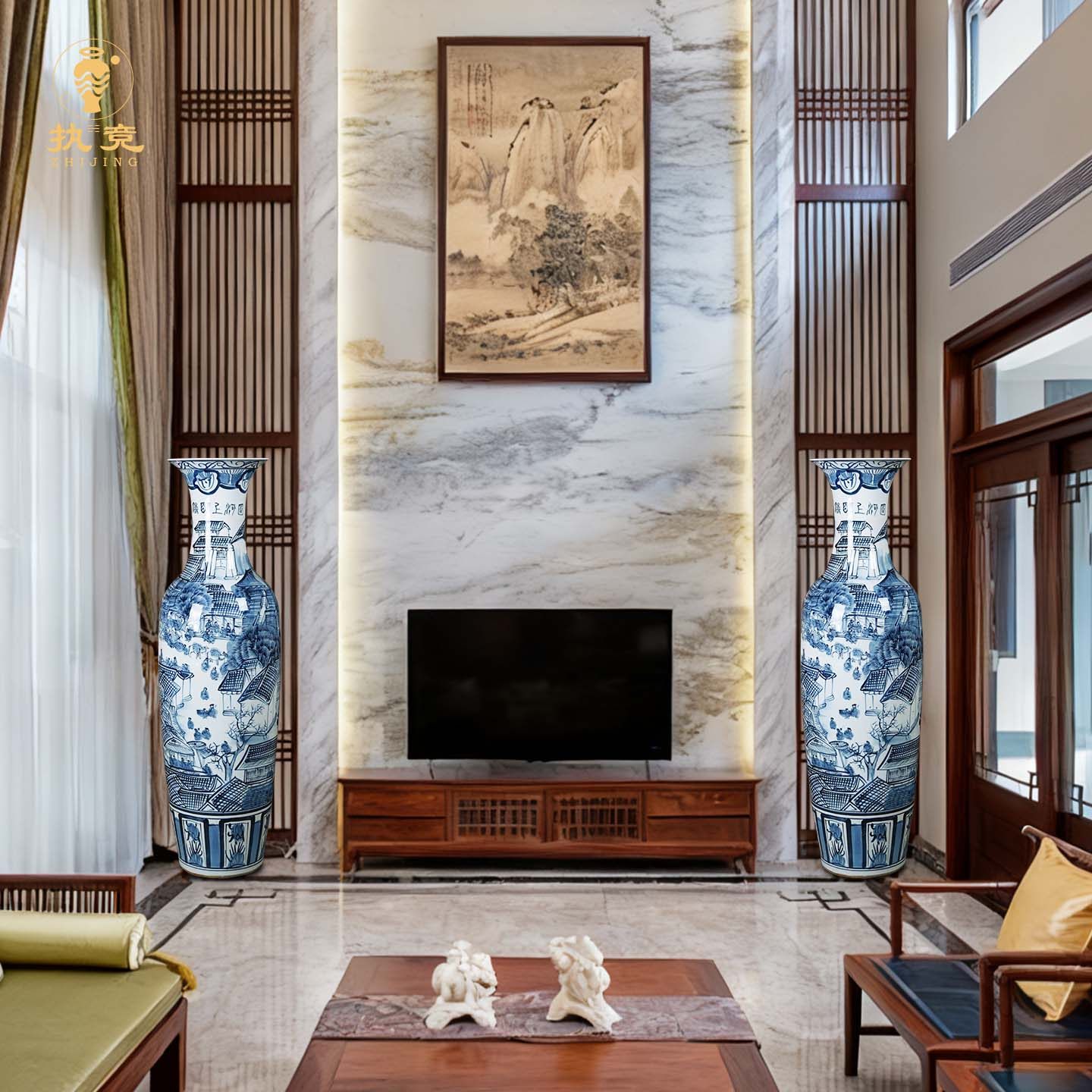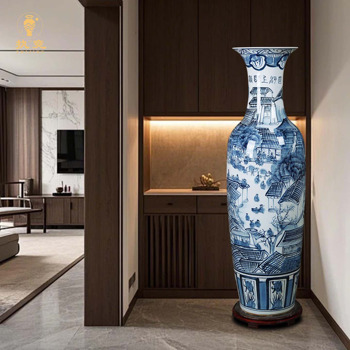 清明上河图景德镇陶瓷花瓶手绘青花瓷客厅玄关酒店落地摆件送礼品