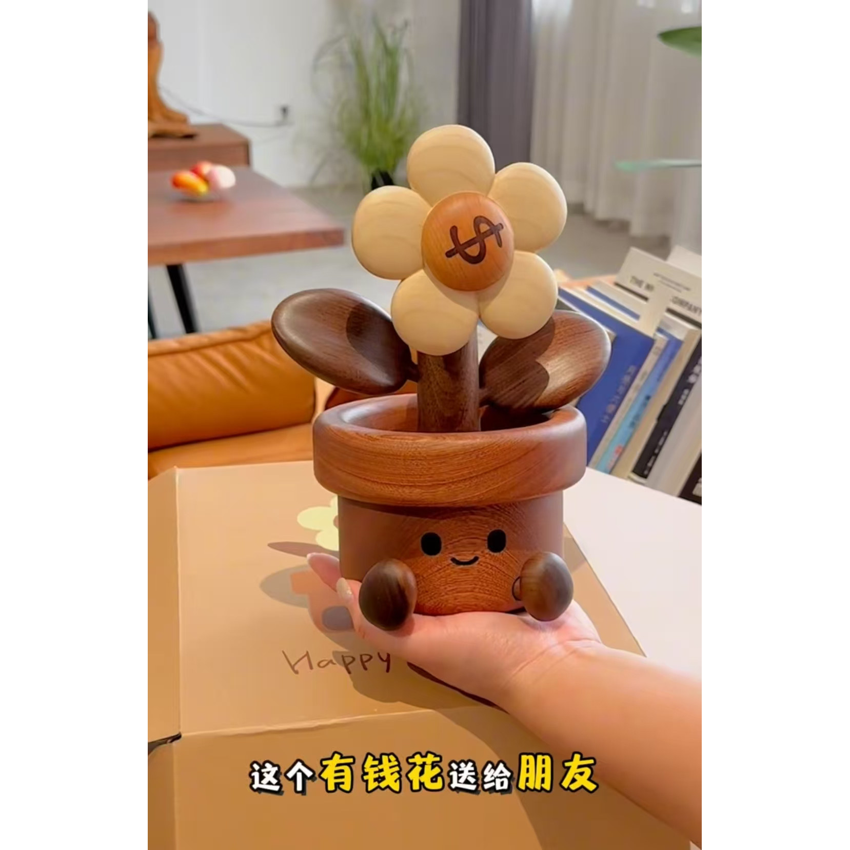 开心太阳有钱花实木可爱摆件装饰创意治愈系送朋友神器礼物