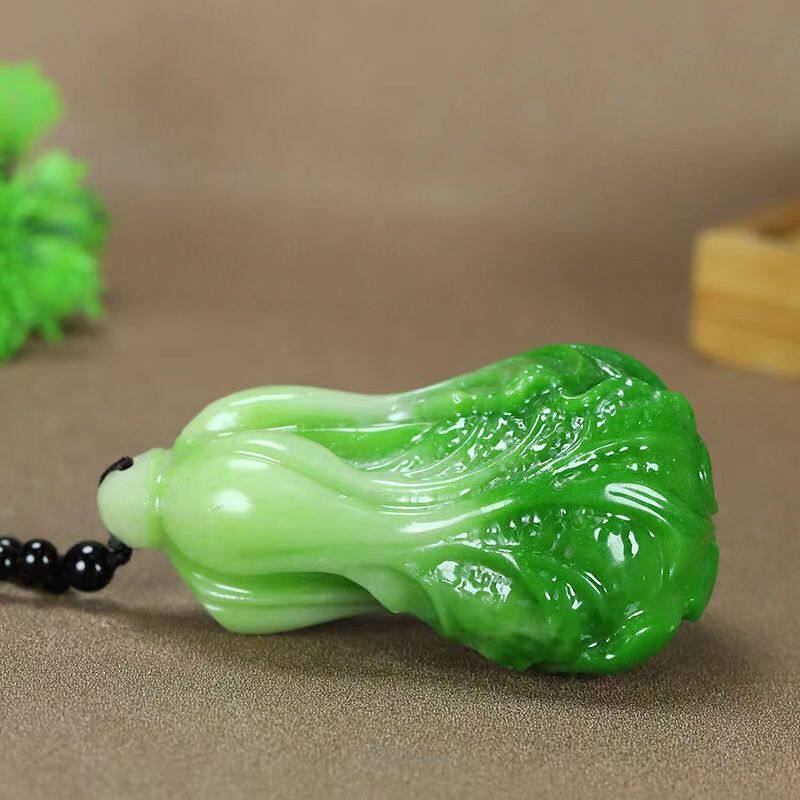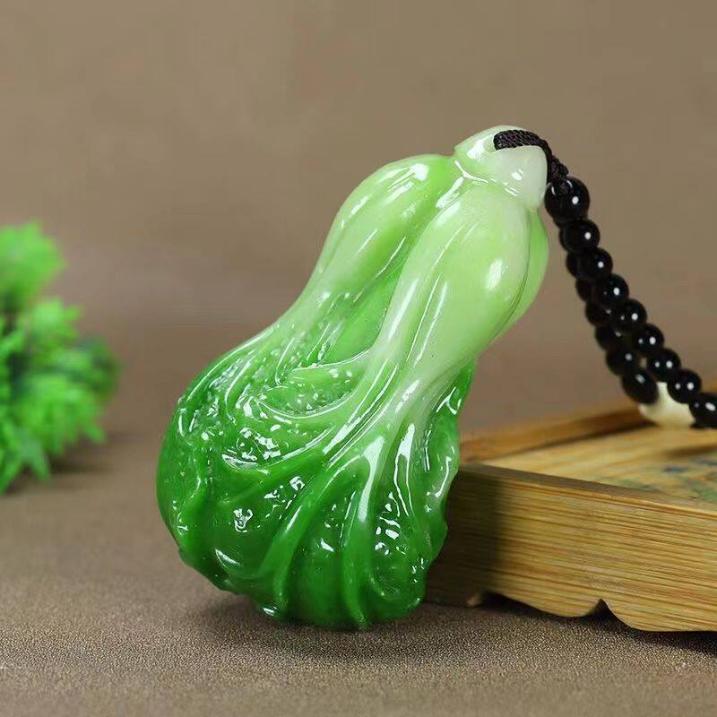和田色玉白绿玉白菜吊坠男女情侣款玉坠百财玉石简约项坠送礼物