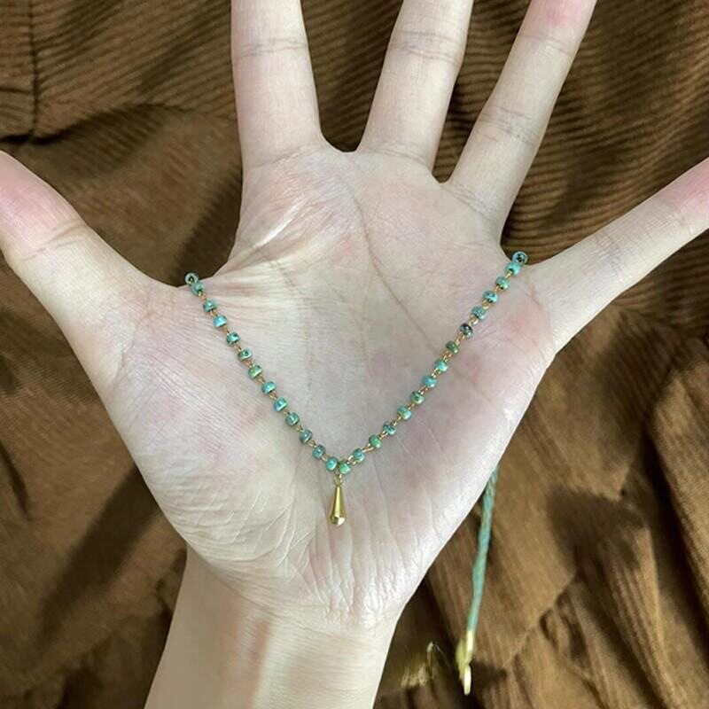 新中式绿色米珠项链高级感气质百搭夏天金色水滴锁骨链