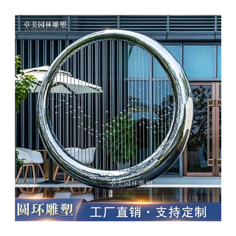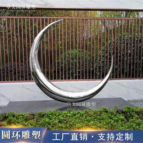 不锈钢月亮圆环雕塑定制大型镜面发光月牙园林水景创意装饰摆件