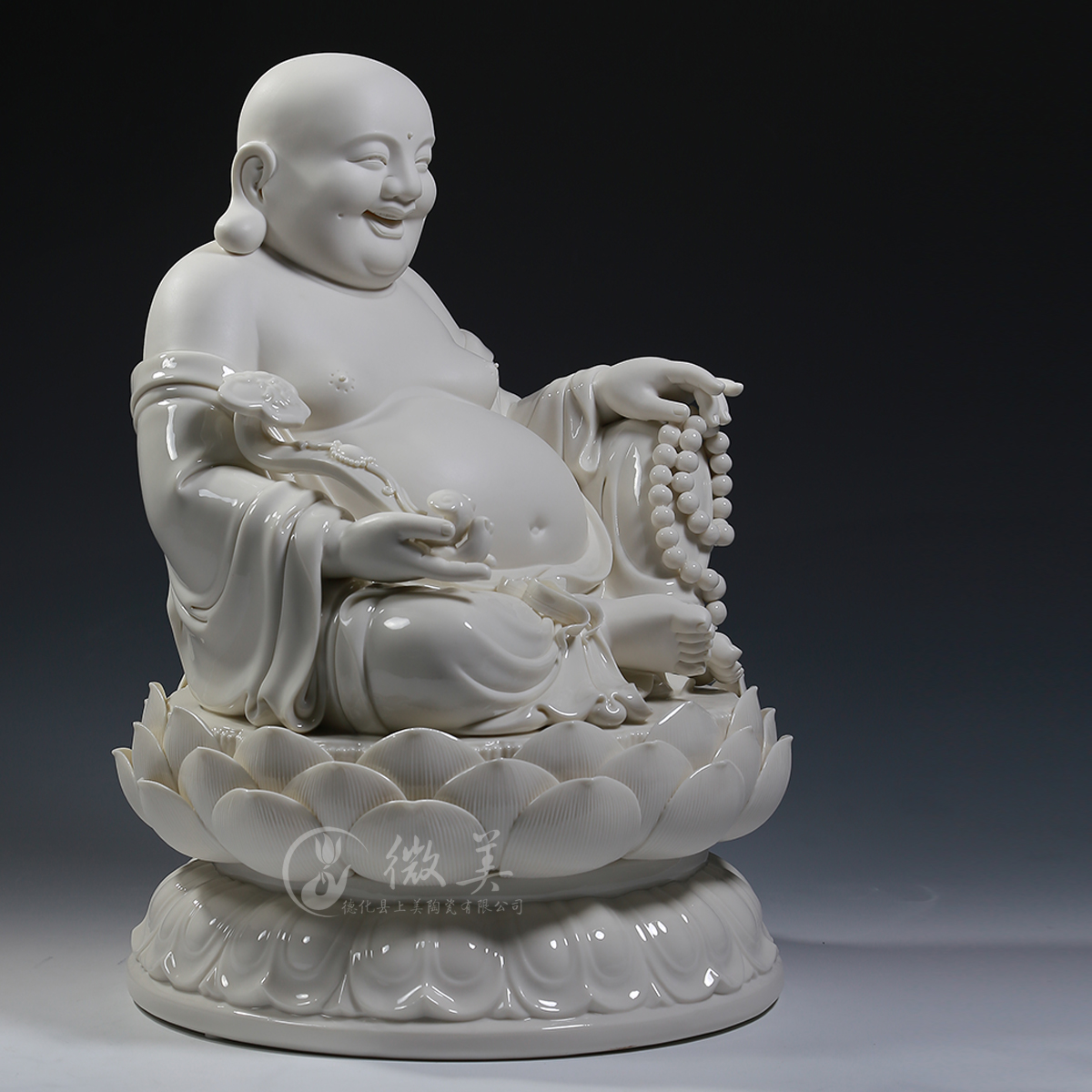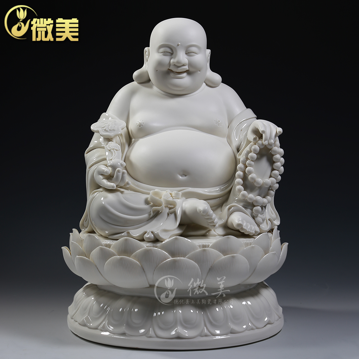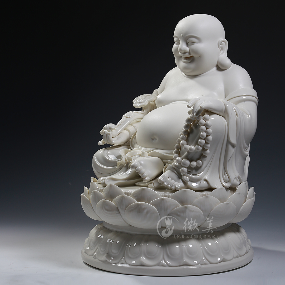 微美陶瓷9至20寸家用供奉大肚弥勒佛像客厅笑佛瓷器摆件白瓷佛像