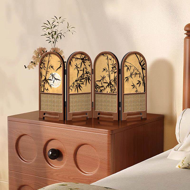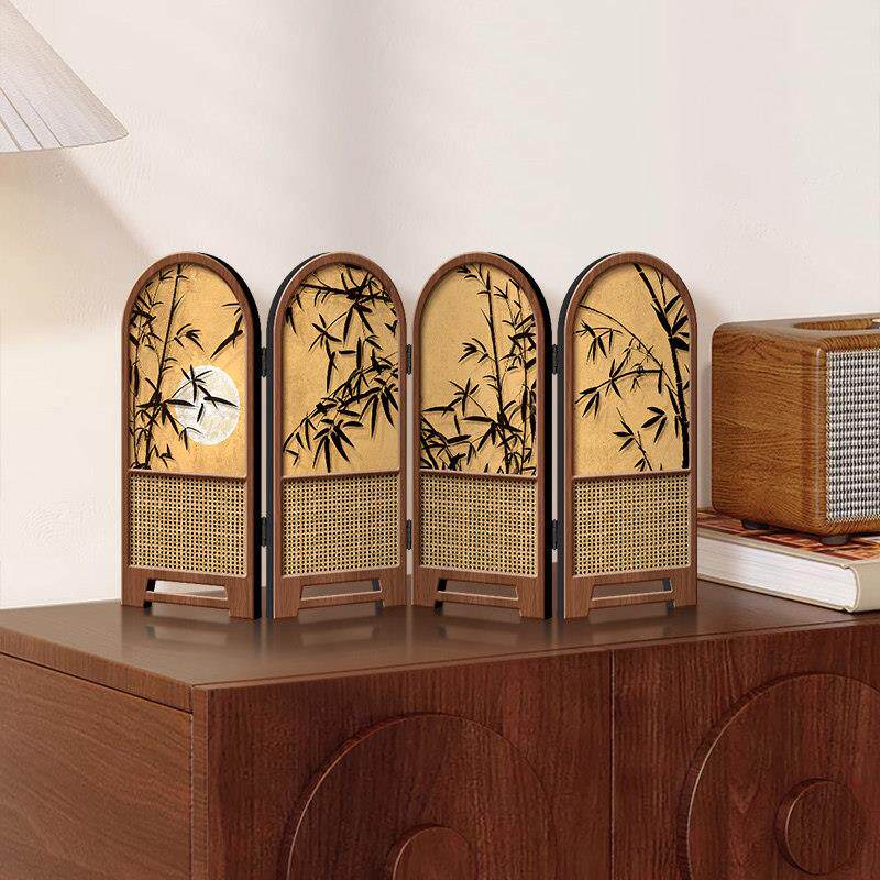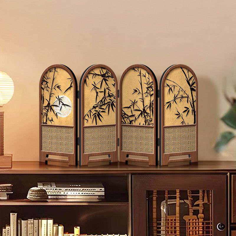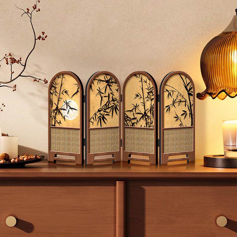 小屏风摆件中古风竹子新款桌面摆台画 划折叠折屏高级感电视柜装