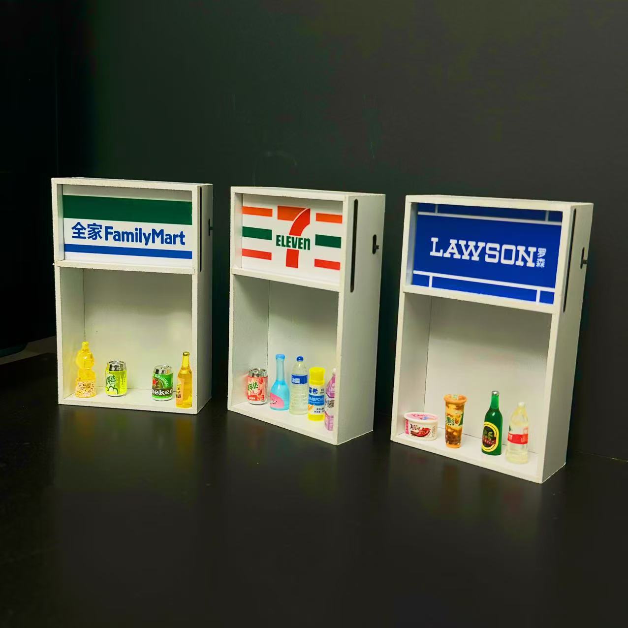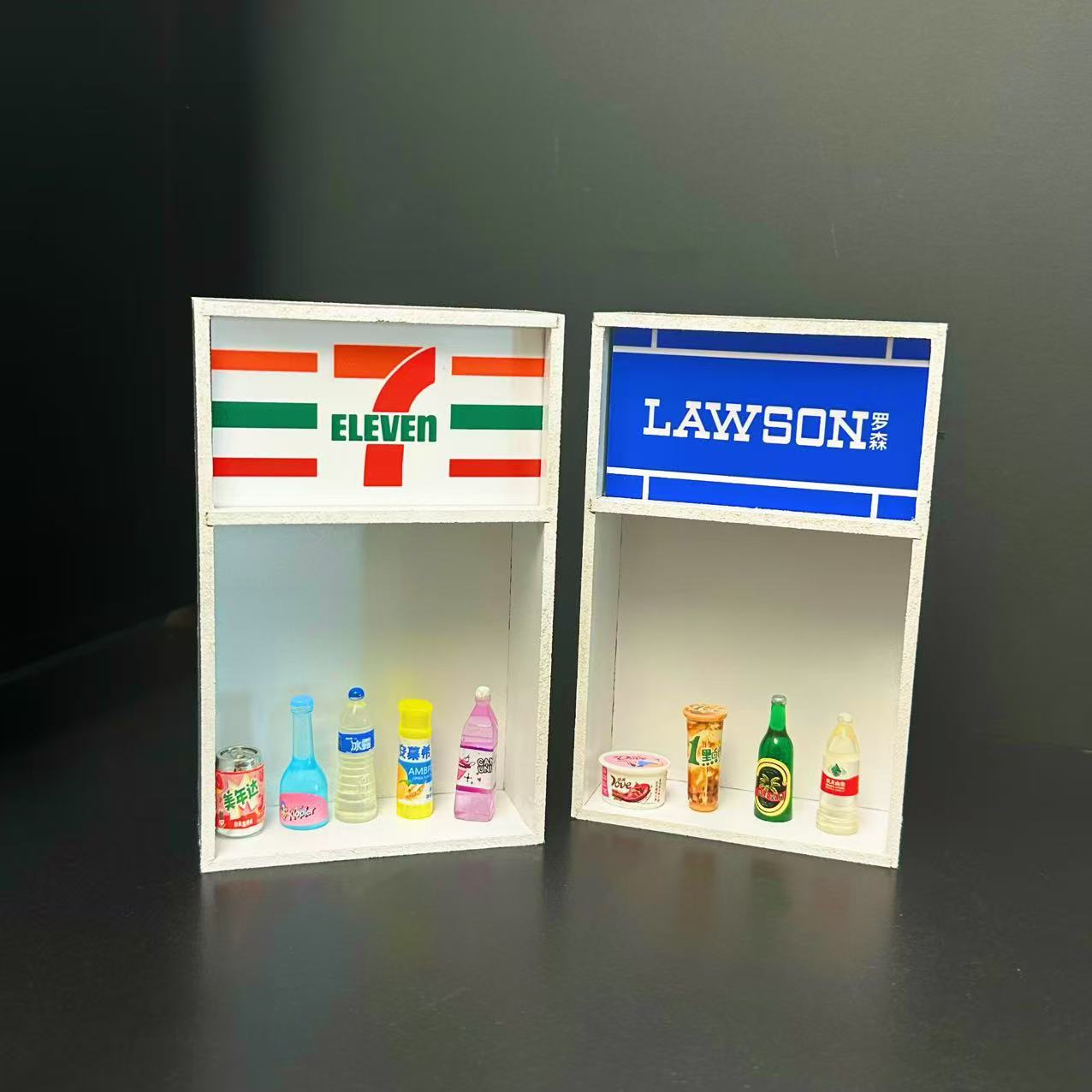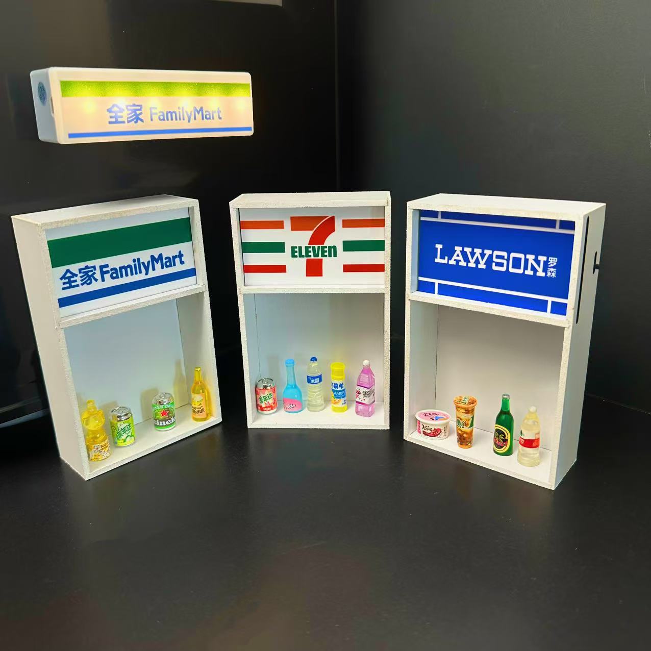 便利店冰箱贴可发光置物架711罗森微缩模型玩具磁性摆件家居装饰