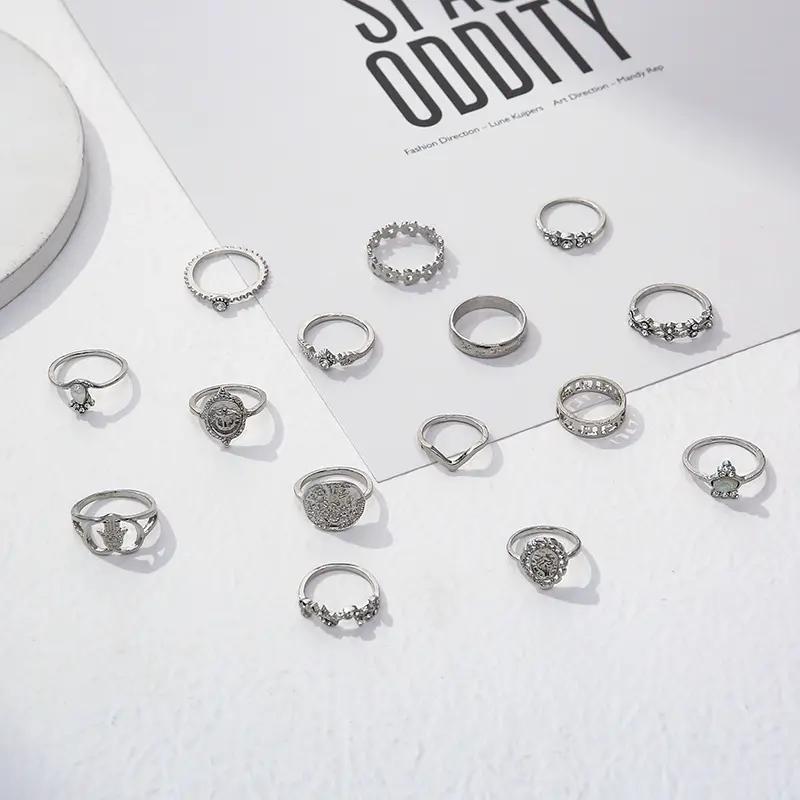 复古美人头像金币十字架花纹爱心法蒂玛之手掌指环15十五件套戒指