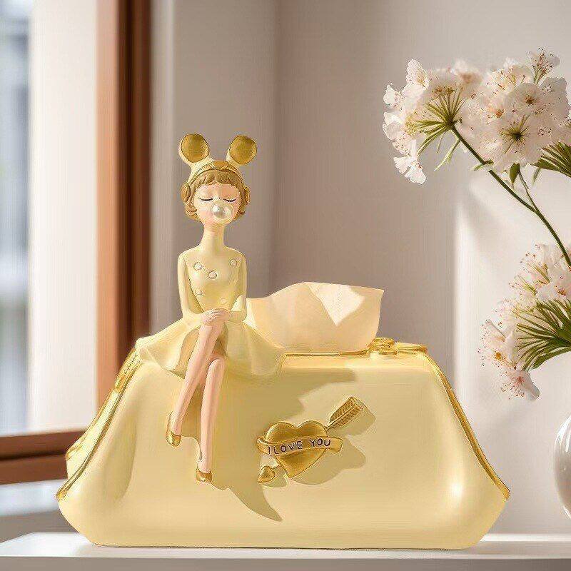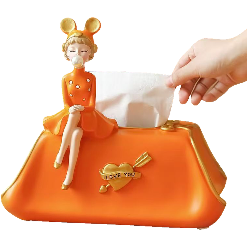 工厂代发泡泡女孩纸巾盒家居客厅玄关卧室橙粉绿色抽纸盒桌面摆件