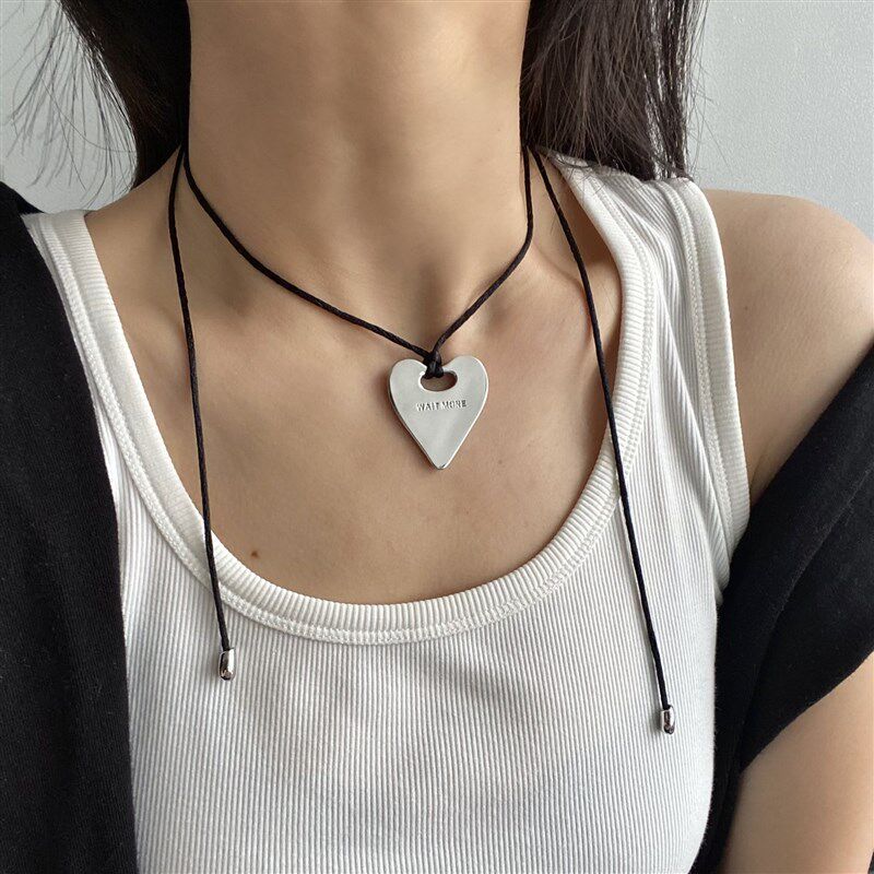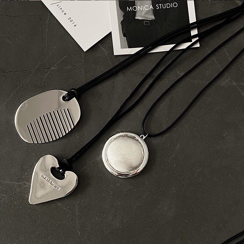 新款黑绳子不锈钢小梳子长款项链字母爱心拉丝白色圆形小众项链女