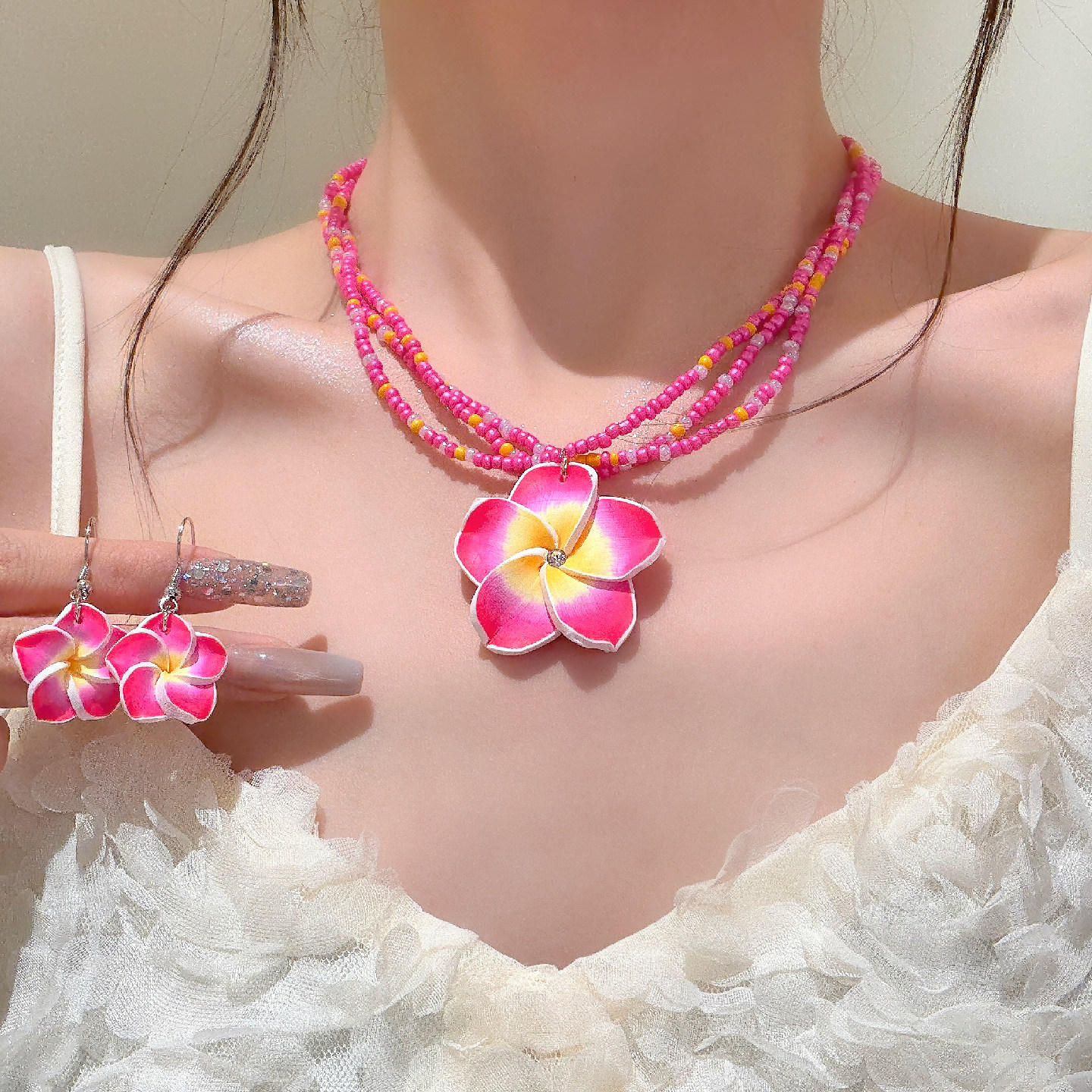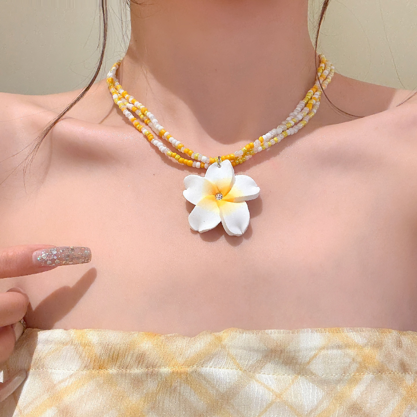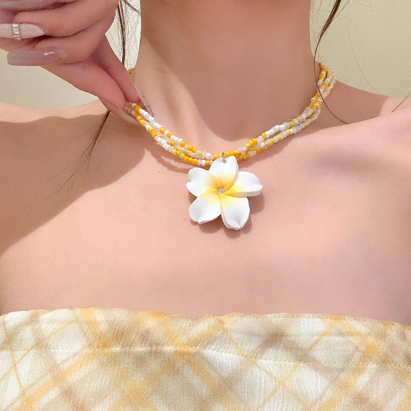 一眼吸睛 黄色鸡蛋花串珠项链耳钉女小众甜美锁骨链海边度假配饰