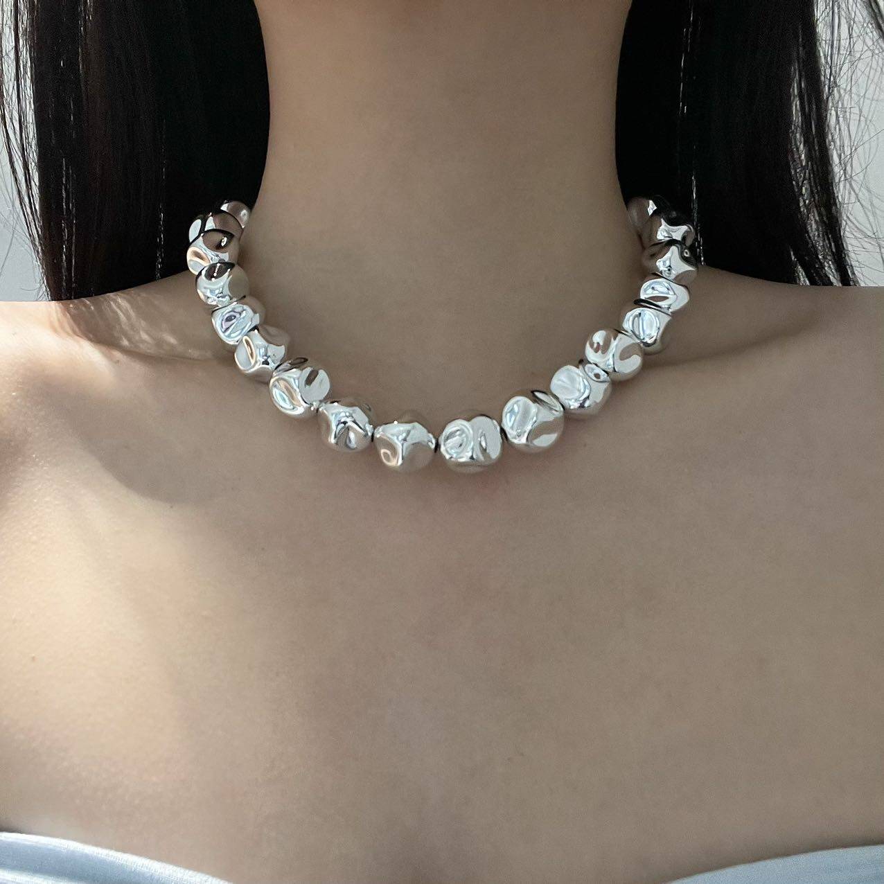 欧美复古不规则串珠圆珠长项链女时尚长款choker百搭锁骨链毛衣链