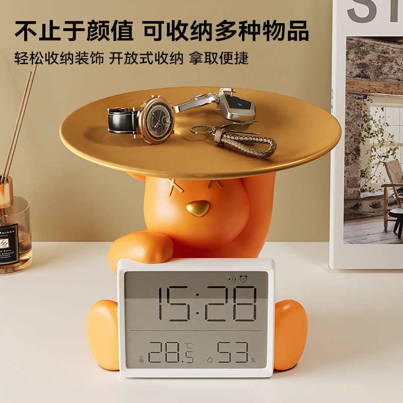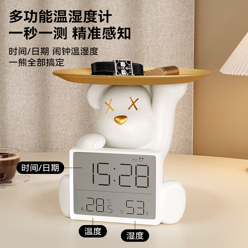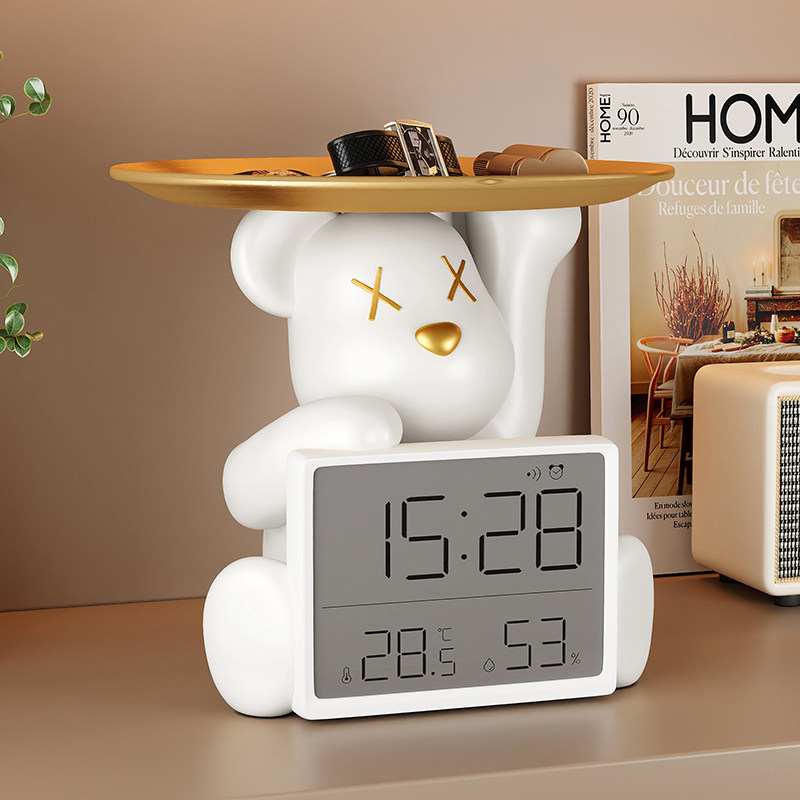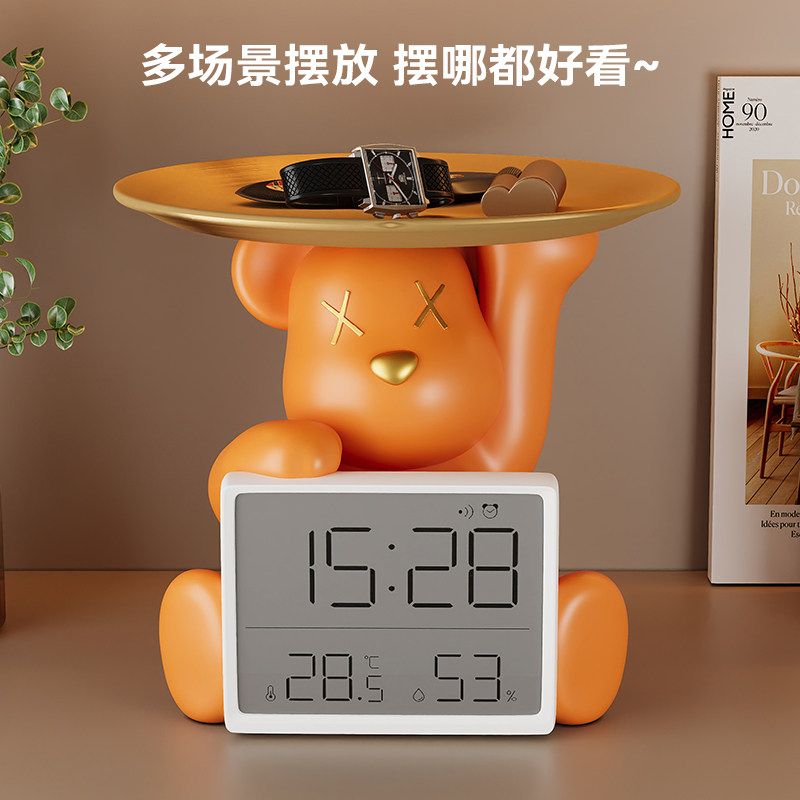 创意暴力熊时钟摆台式桌面钥匙收纳摆件客厅室内温度计家用礼物