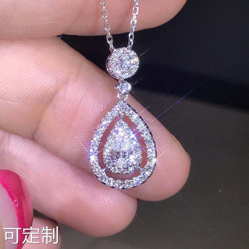 仿真钻石项链女镀18k锁骨链水滴梨形莫桑钻吊坠玫瑰金3A锆石饰品
