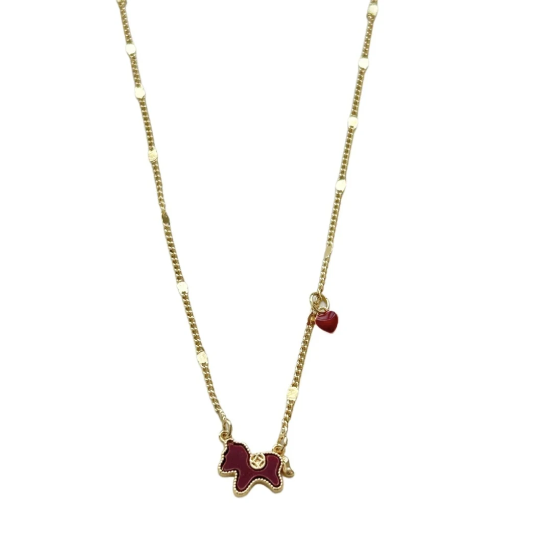 马上有钱~红色爱心小马吊坠项链女2025新款新中式轻奢毛衣链配饰