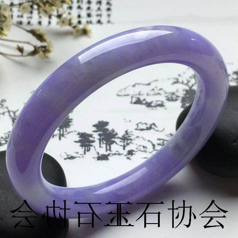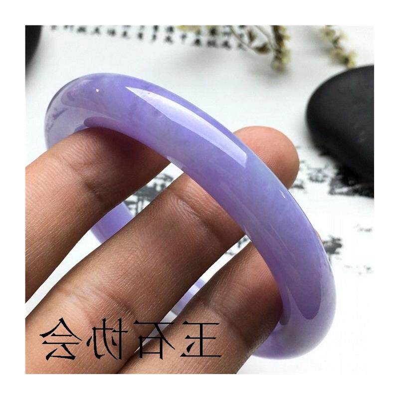缅甸冰糯种翡翠色手镯紫罗兰帝王紫圆条玉器玉镯子传世玉石女手镯