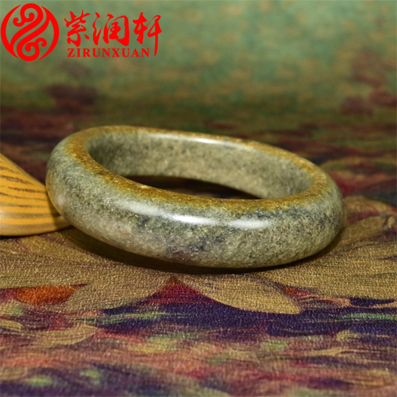 紫润轩新疆和田玉籽料手镯满皮随形糖沁肉复古哑光59MM罕见传家级