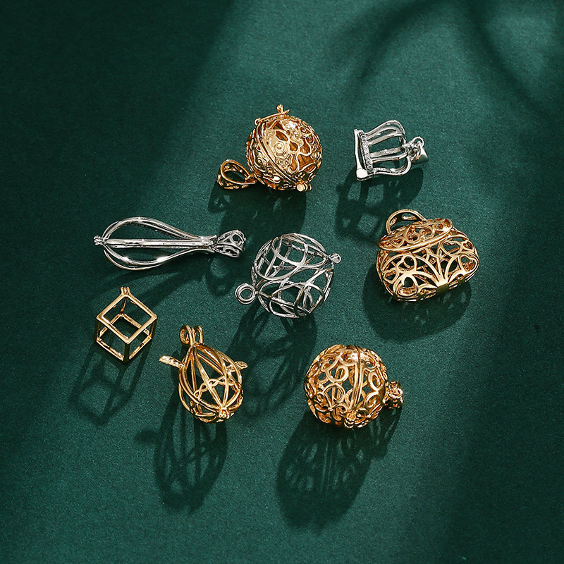 古风香囊球吊坠空托随身佩戴镂空香薰球 珍珠网兜吊坠扣头diy配件