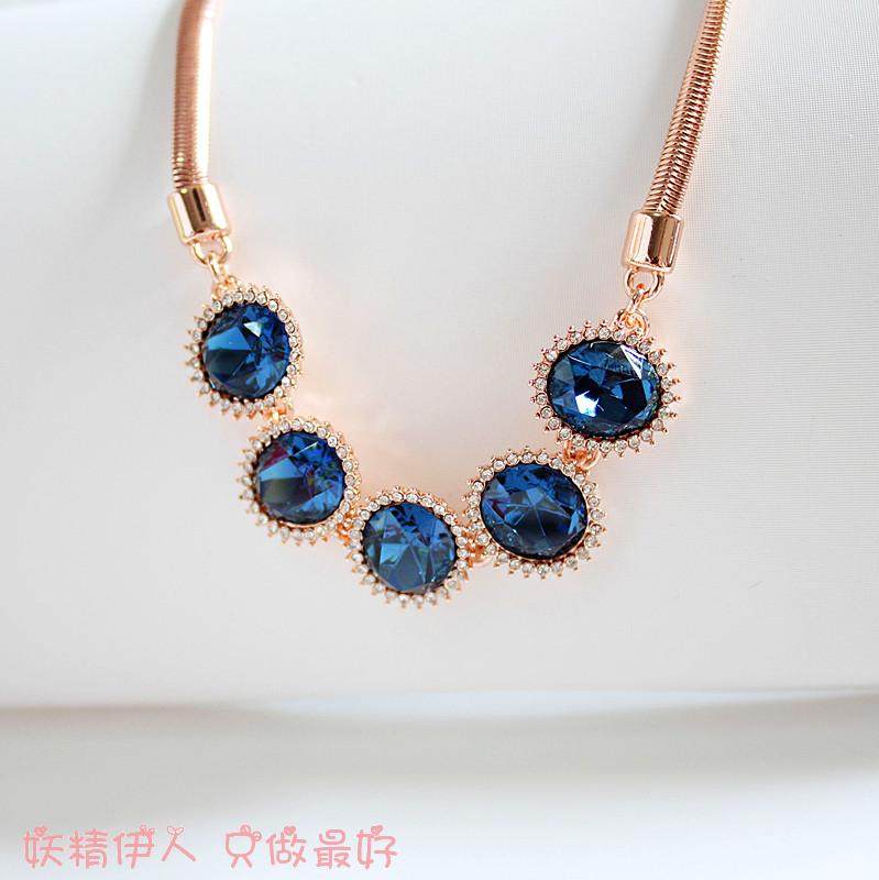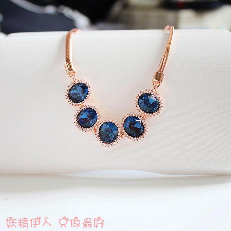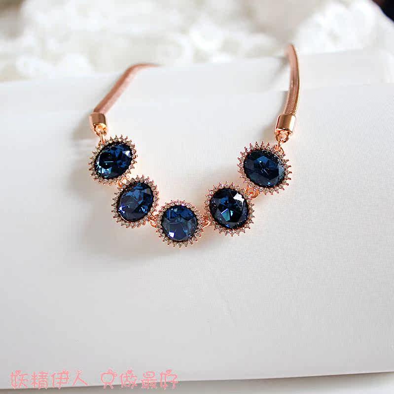 威妮华比拉玫瑰金色奢华蓝色 项链短链 女神款 限量款包邮