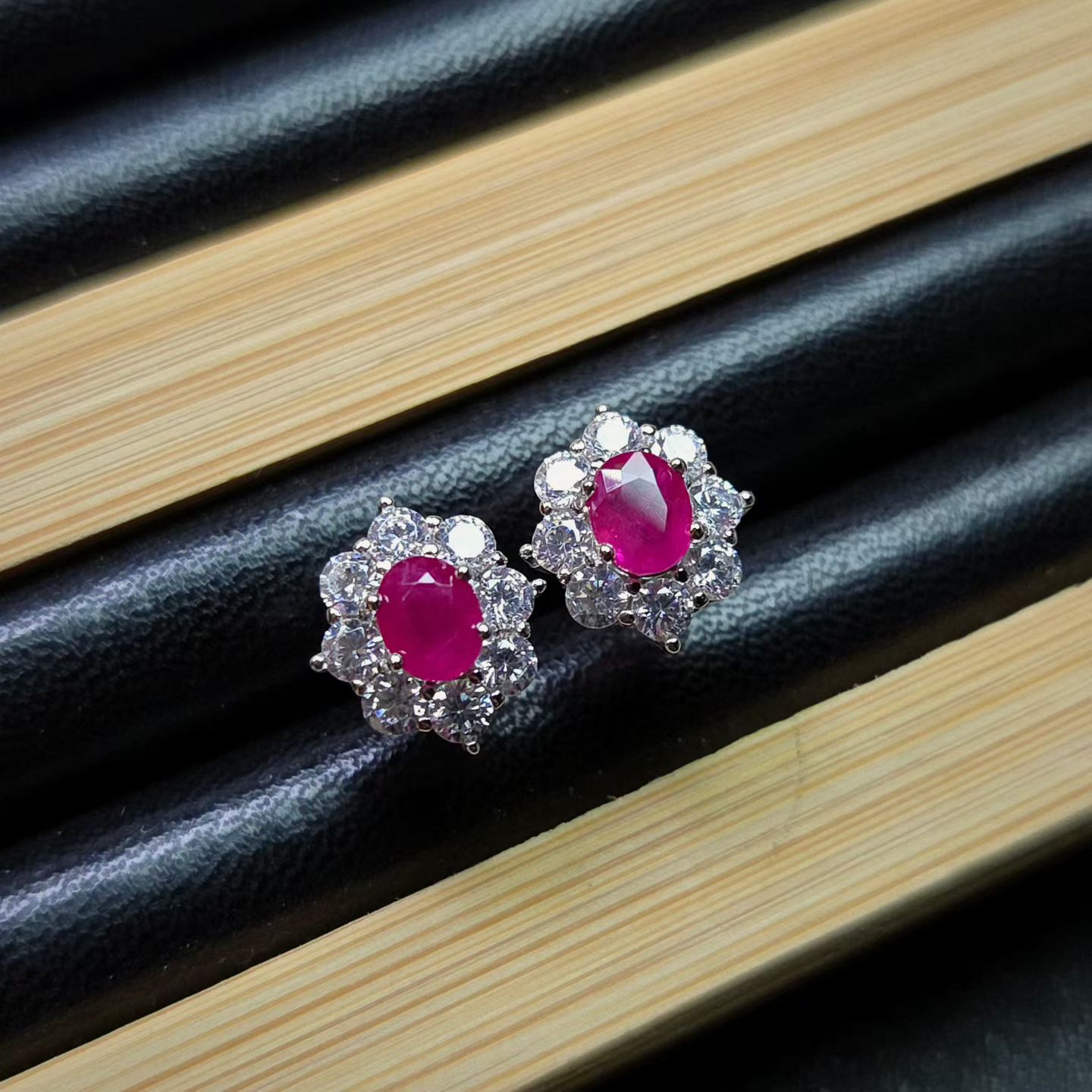 天然红宝石戒指红宝石吊坠偏玫红色色泽艳丽戒指重量戒指耳钉套装