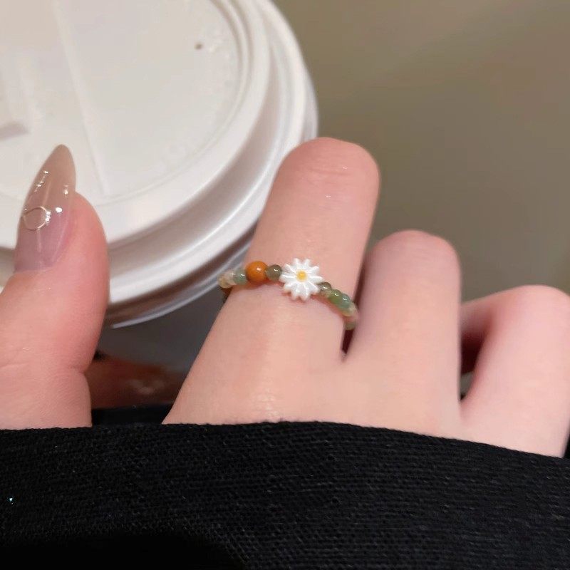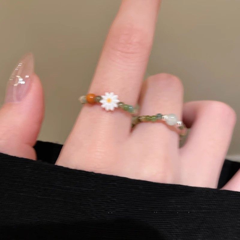 新中式碧玺小雏菊串珠戒指女2025新款轻奢高级感指戒小众设计指环