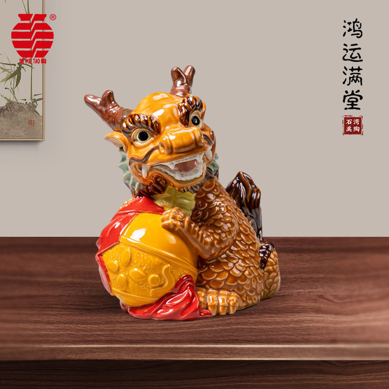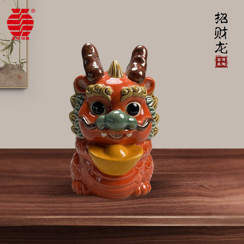 美陶《招财龙》石湾公仔 客厅桌面喜庆装饰创意陶瓷送朋友龙摆件