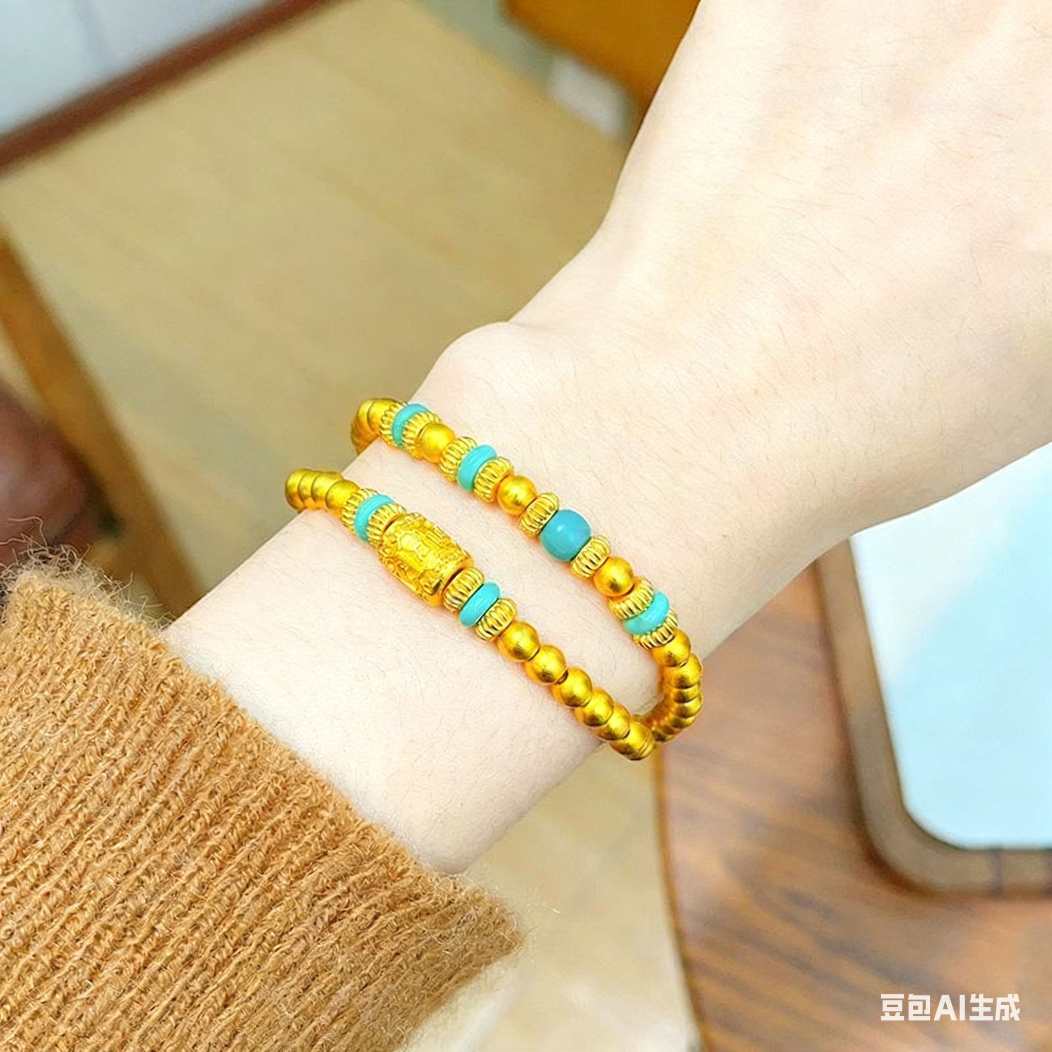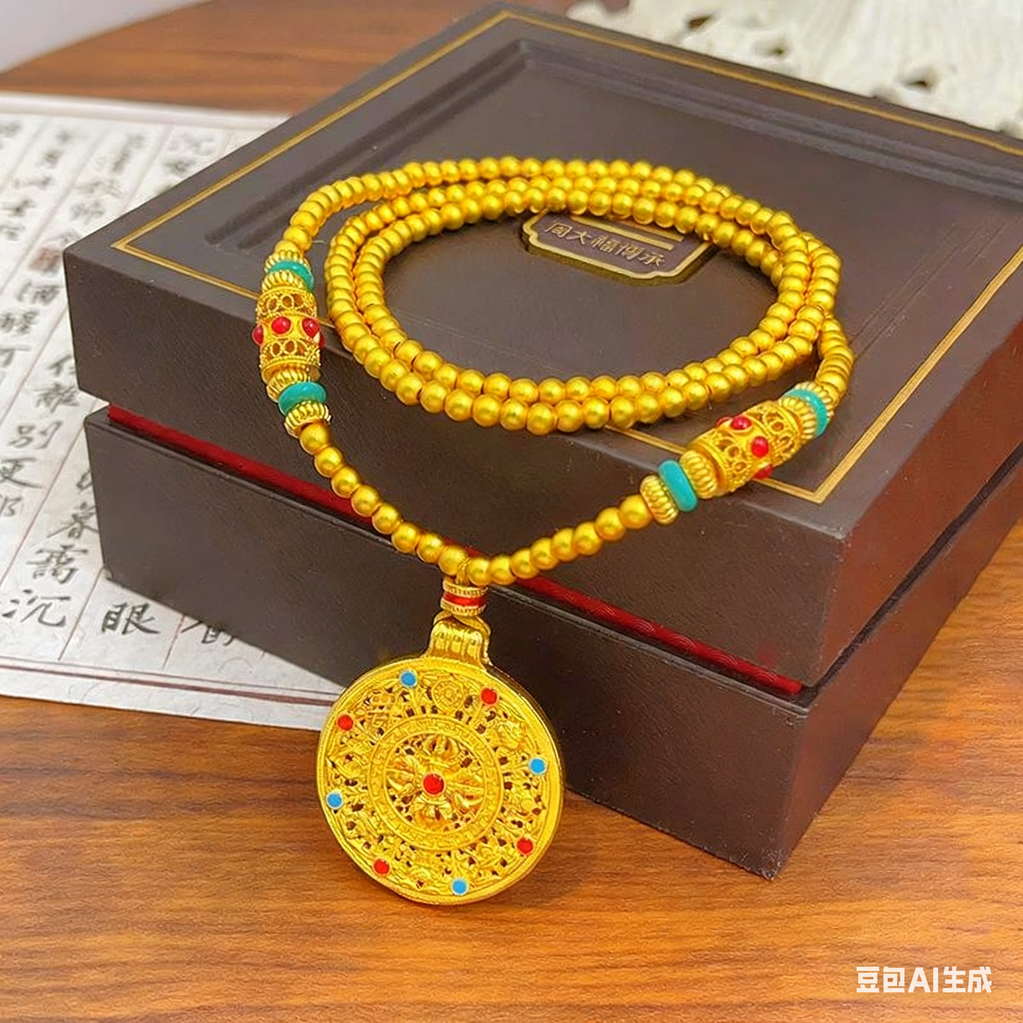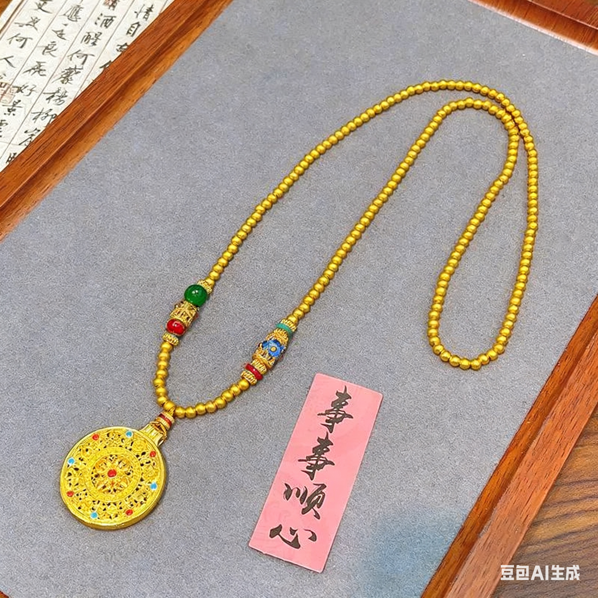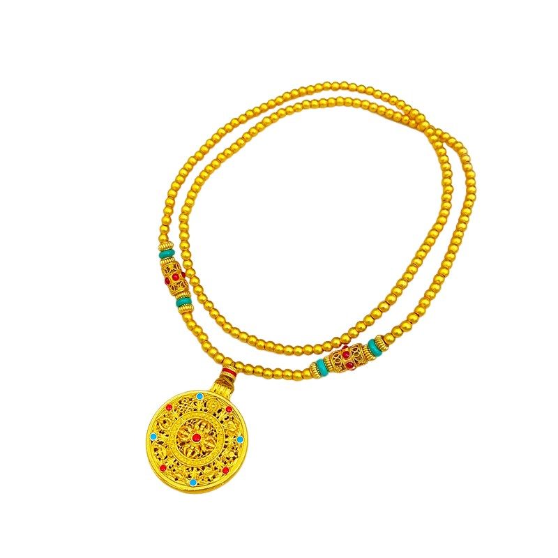 沙金黄金色花丝金刚杵圆盘吊坠项链转运珠八宝罗盘毛衣链