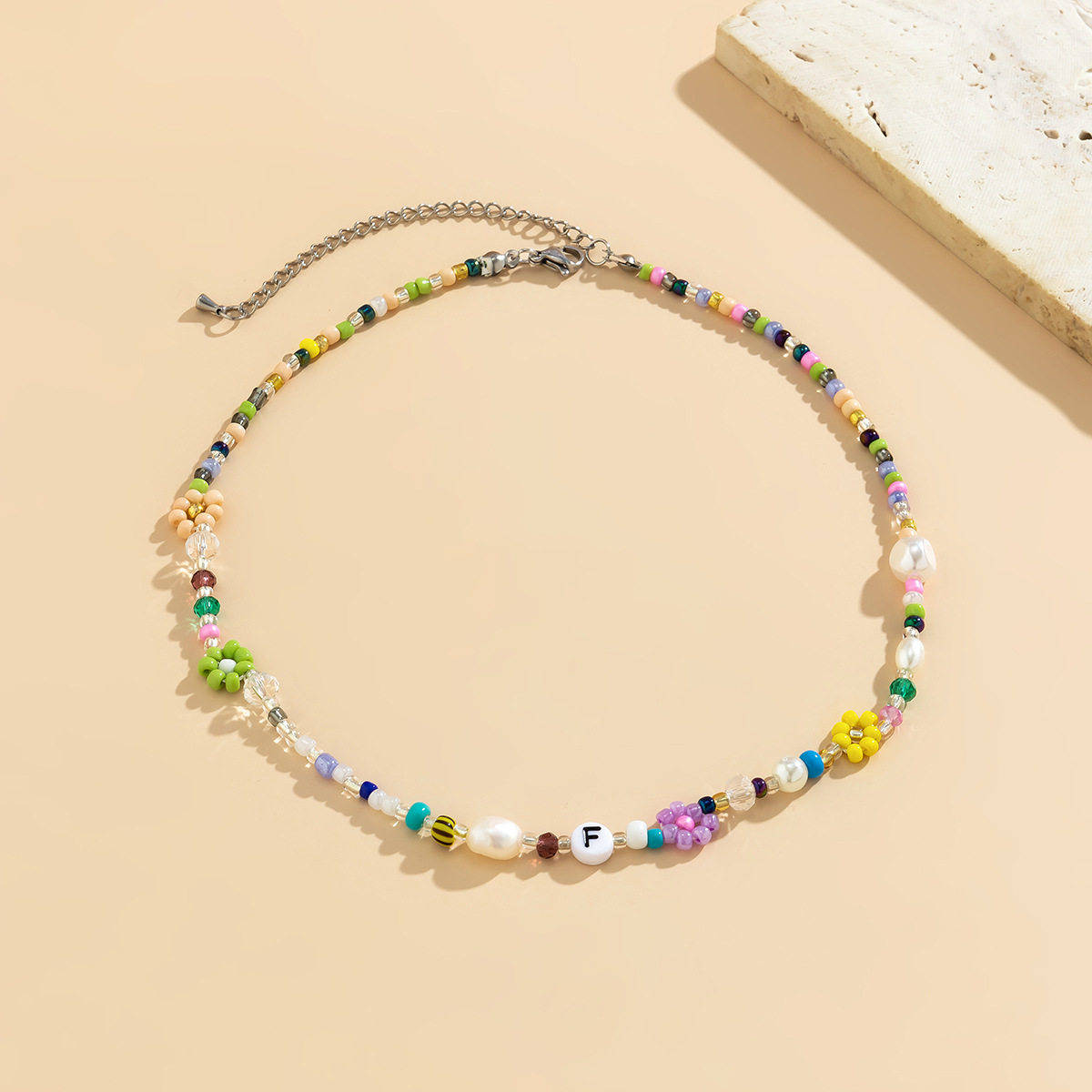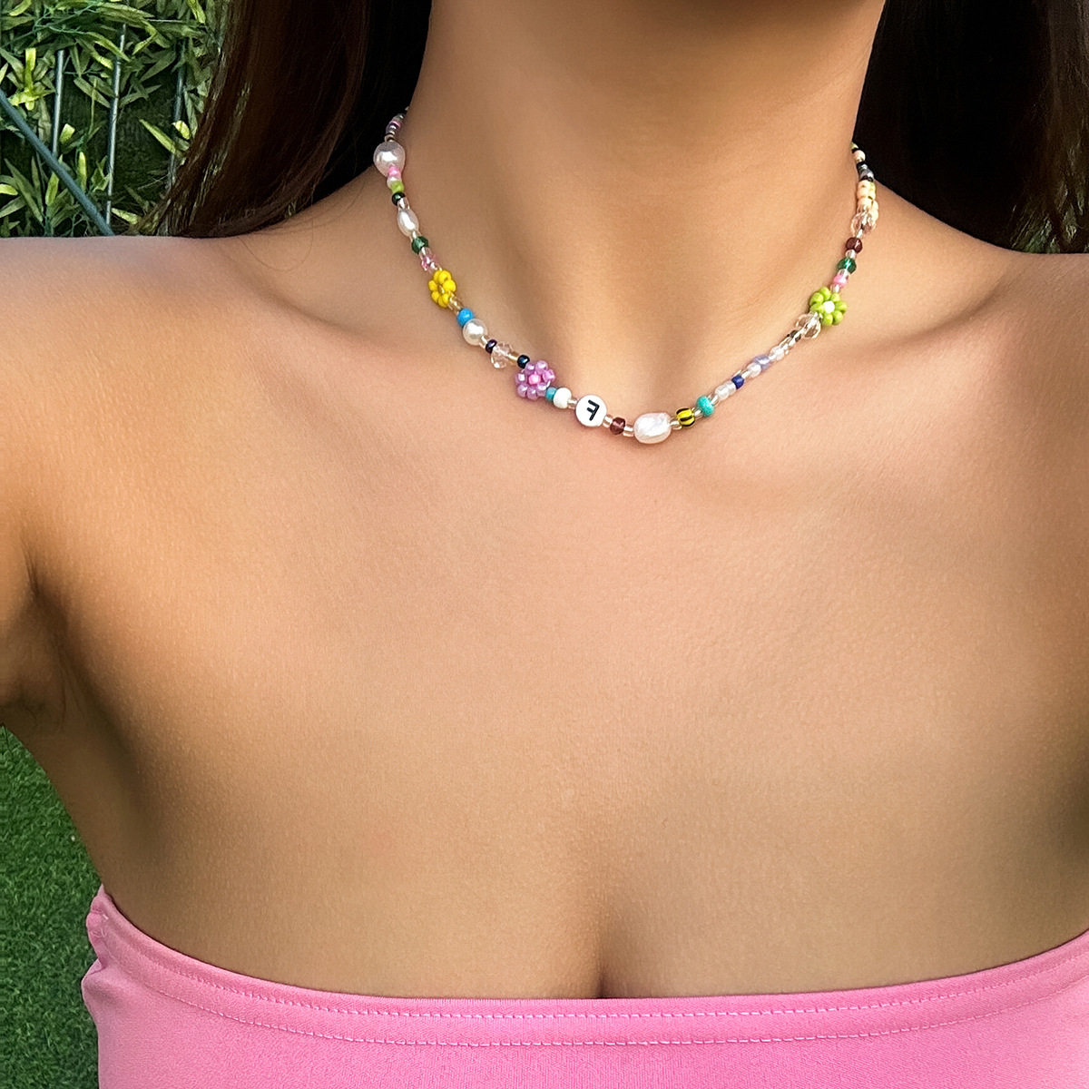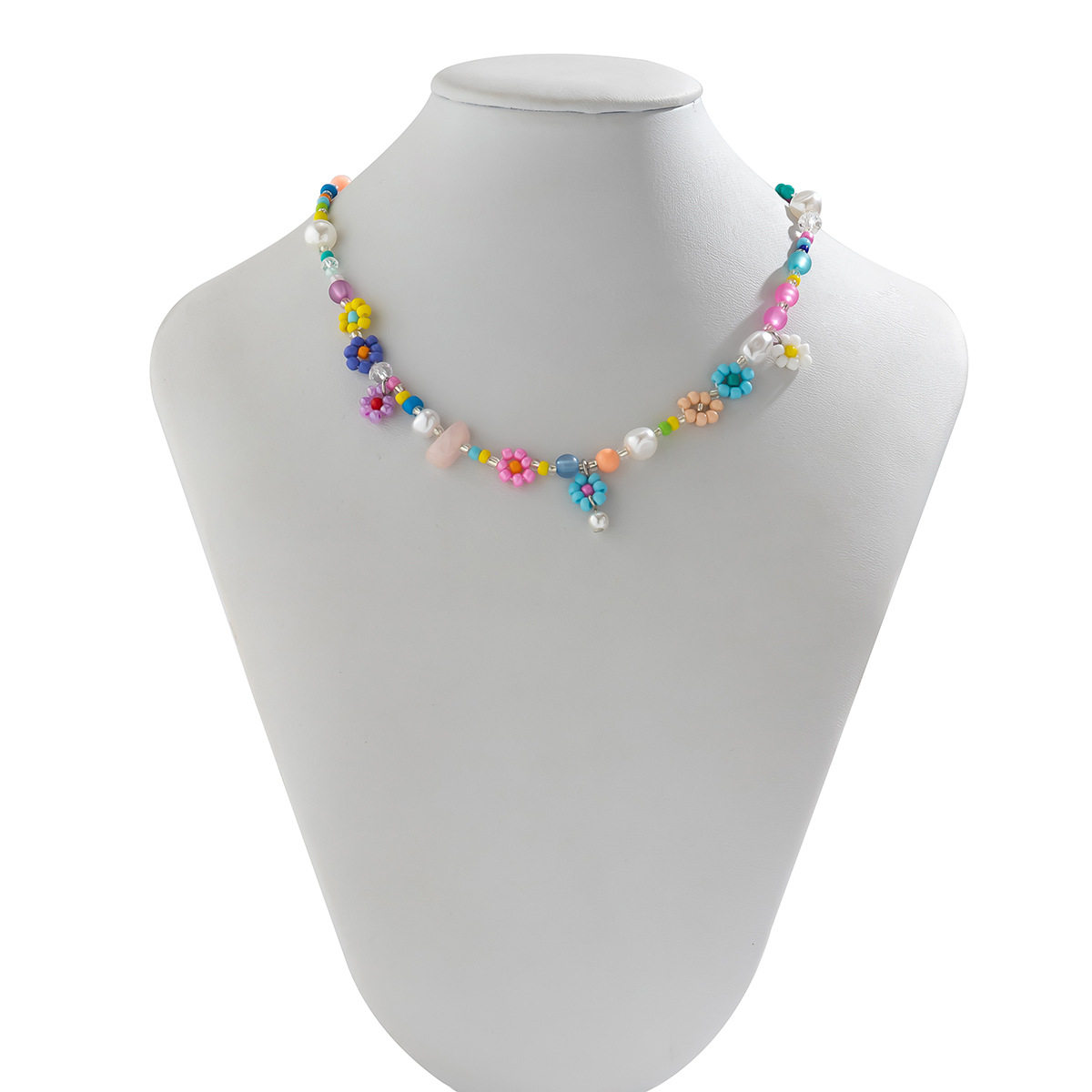 欧美跨境饰品 甜美串珠锁骨链花朵项饰 手工时尚个性米珠项链女