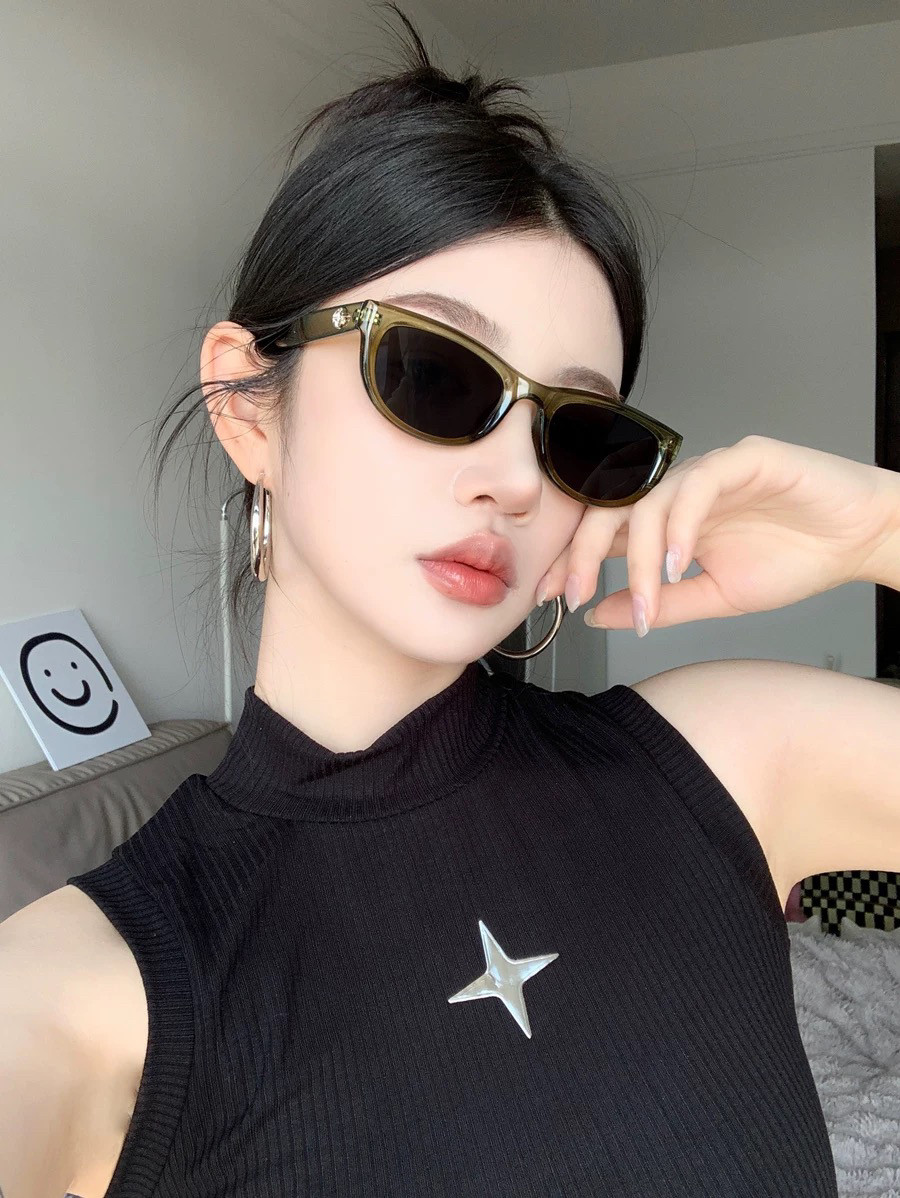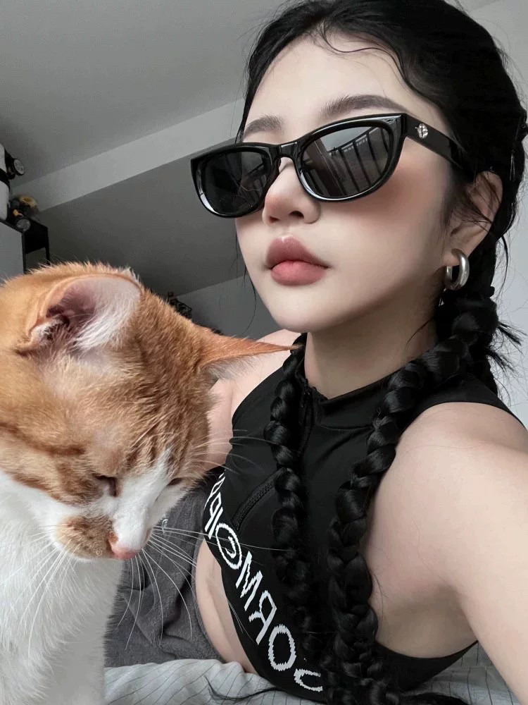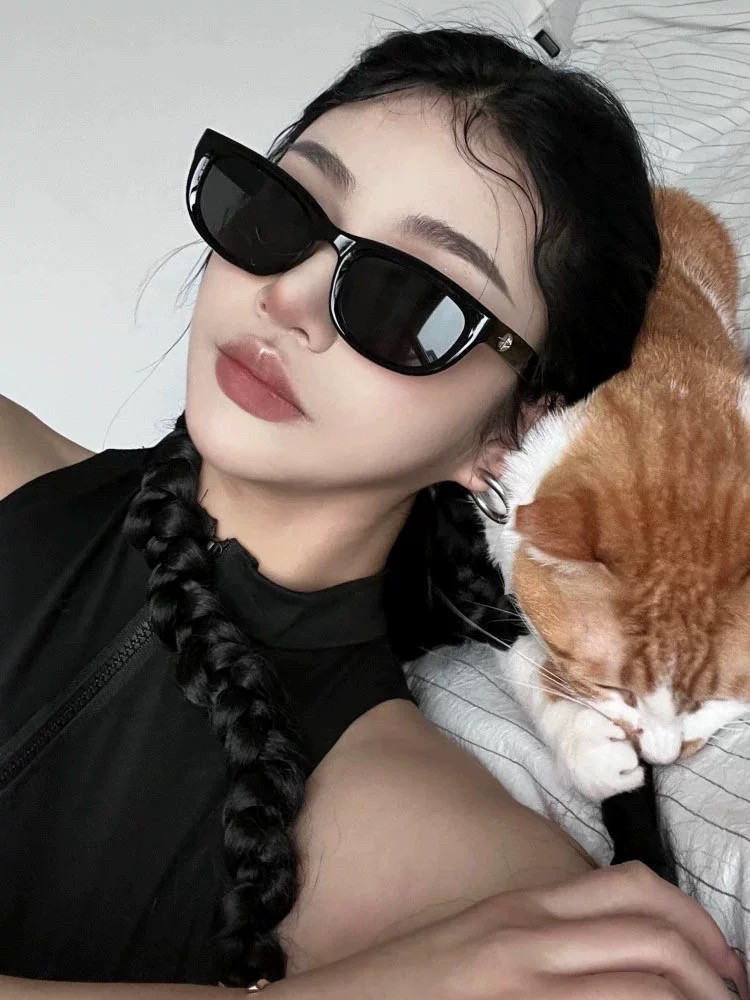 少女CEO复古猫眼黑色辣妹欧美墨镜女高级感小脸防紫外线太阳眼镜