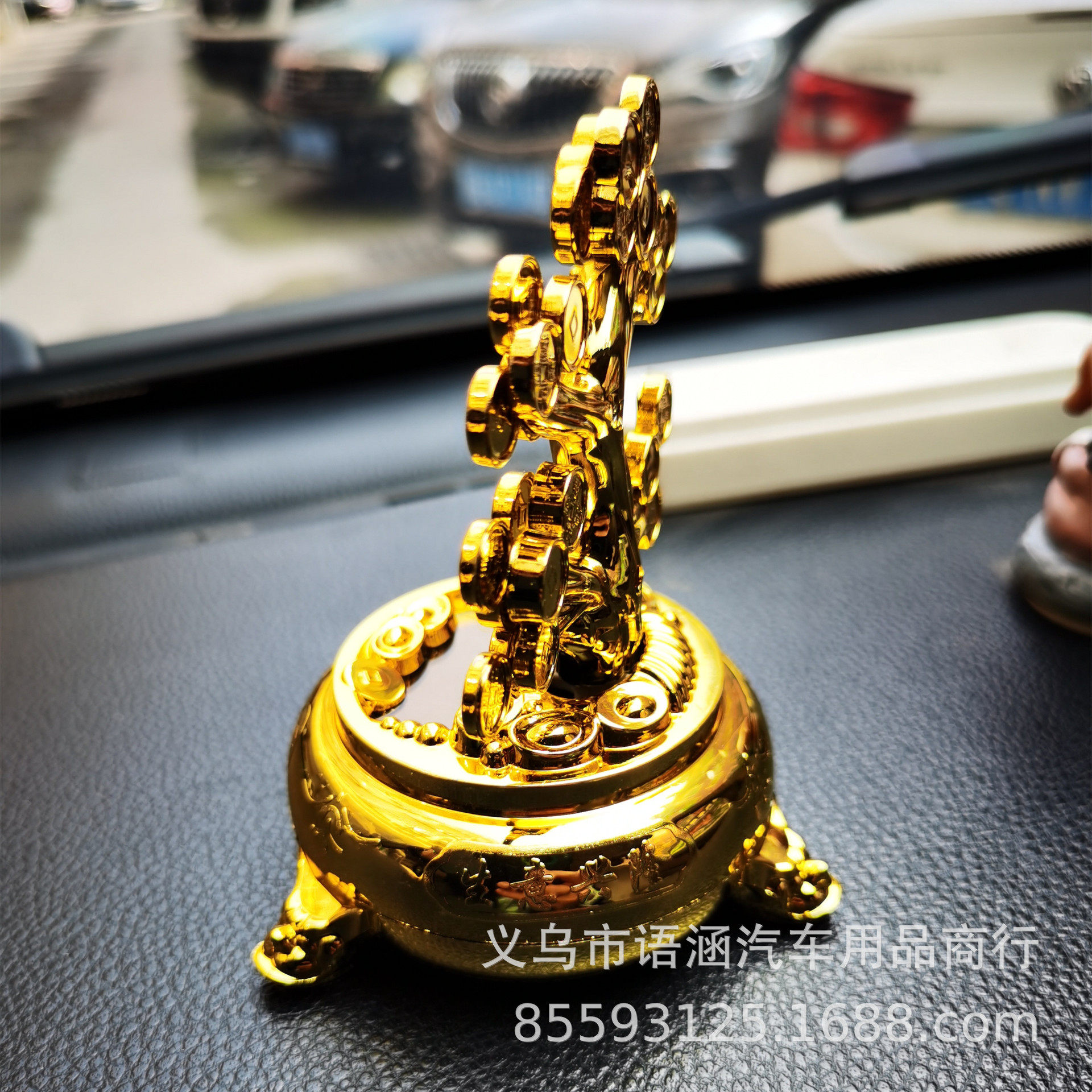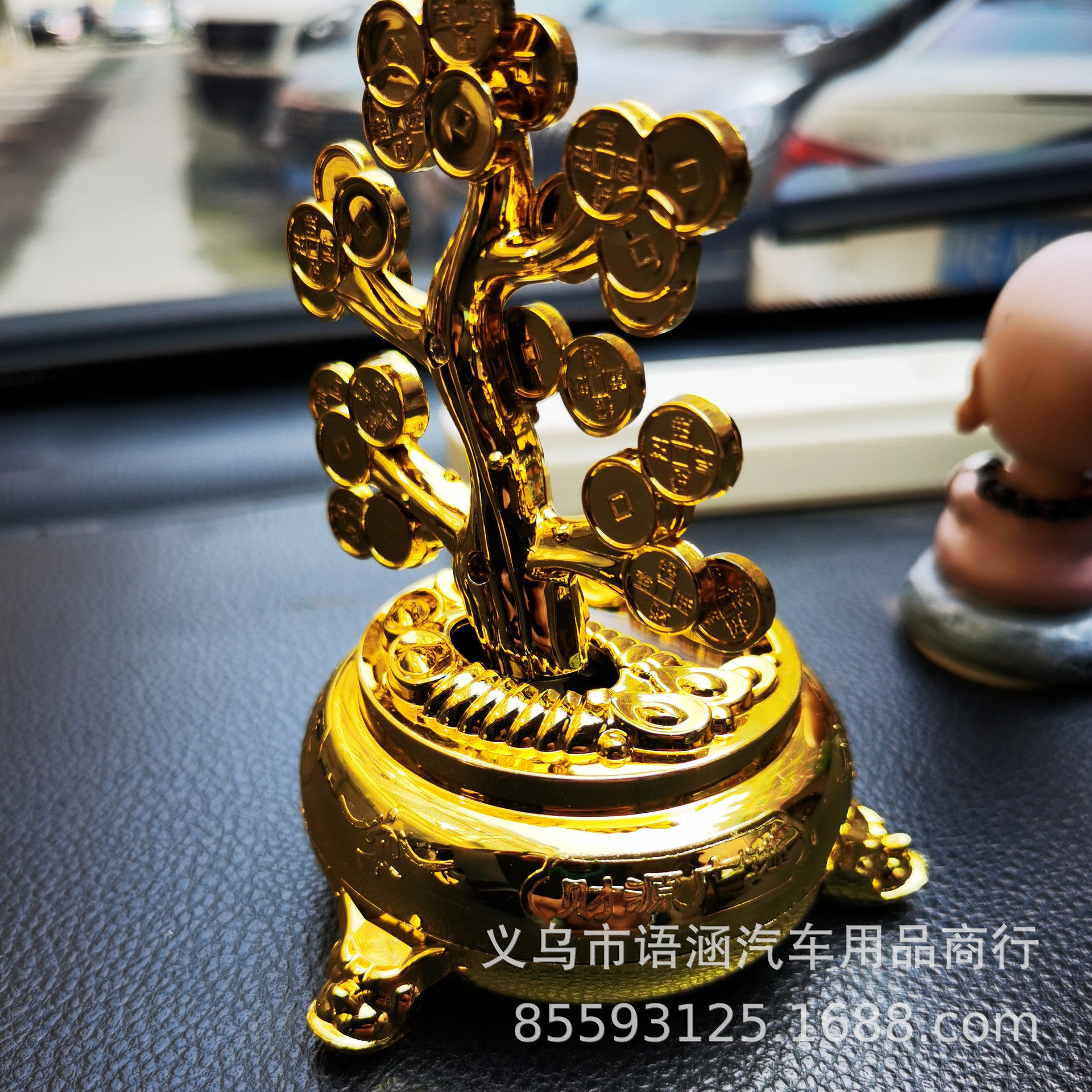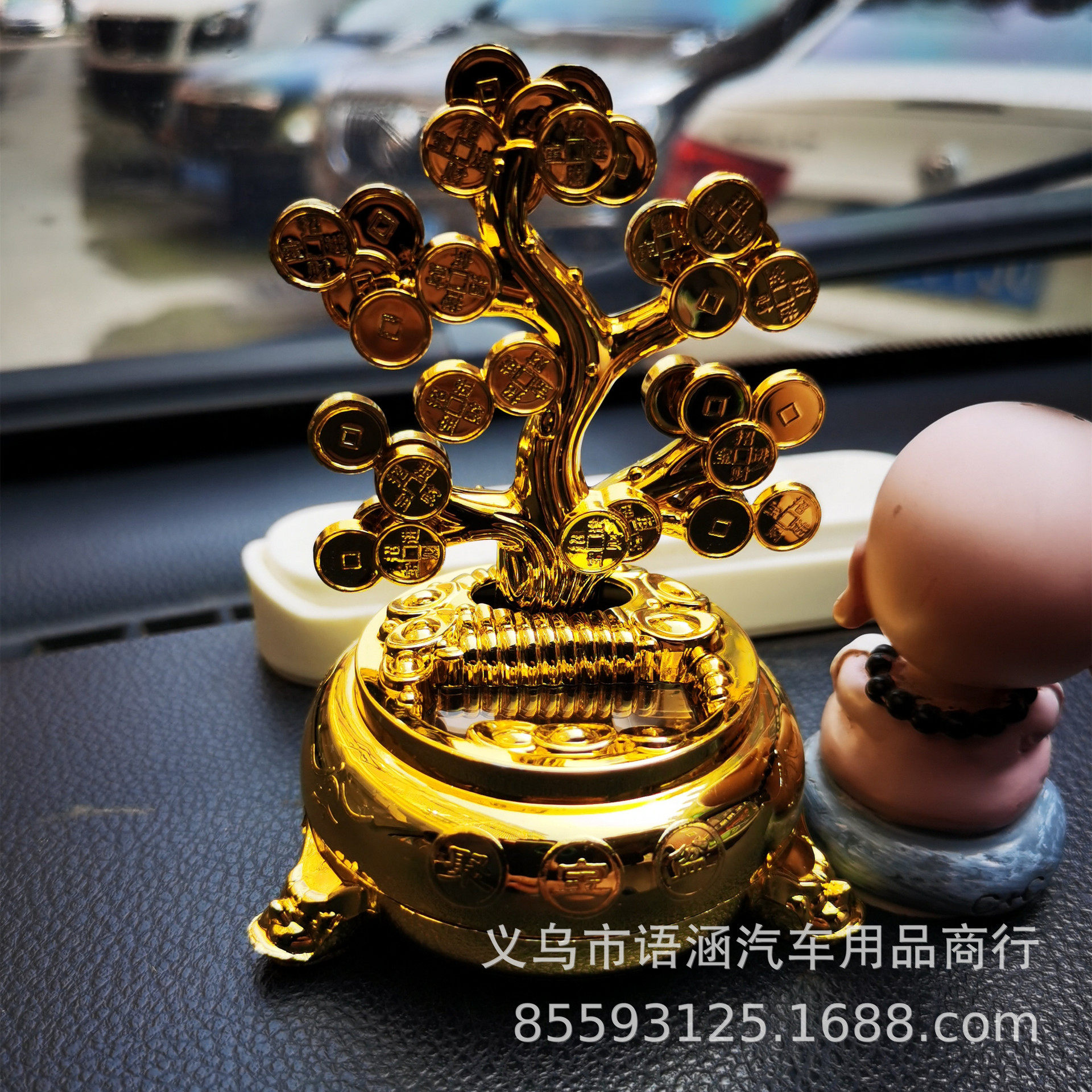 太阳能摇钱树金色红色塑料摆件车内装饰品