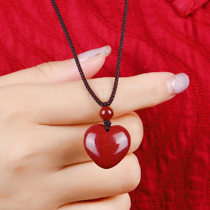 朱砂紫金砂吊坠爱心项链心形锁骨本命年转运平安红色吉利护身饰品
