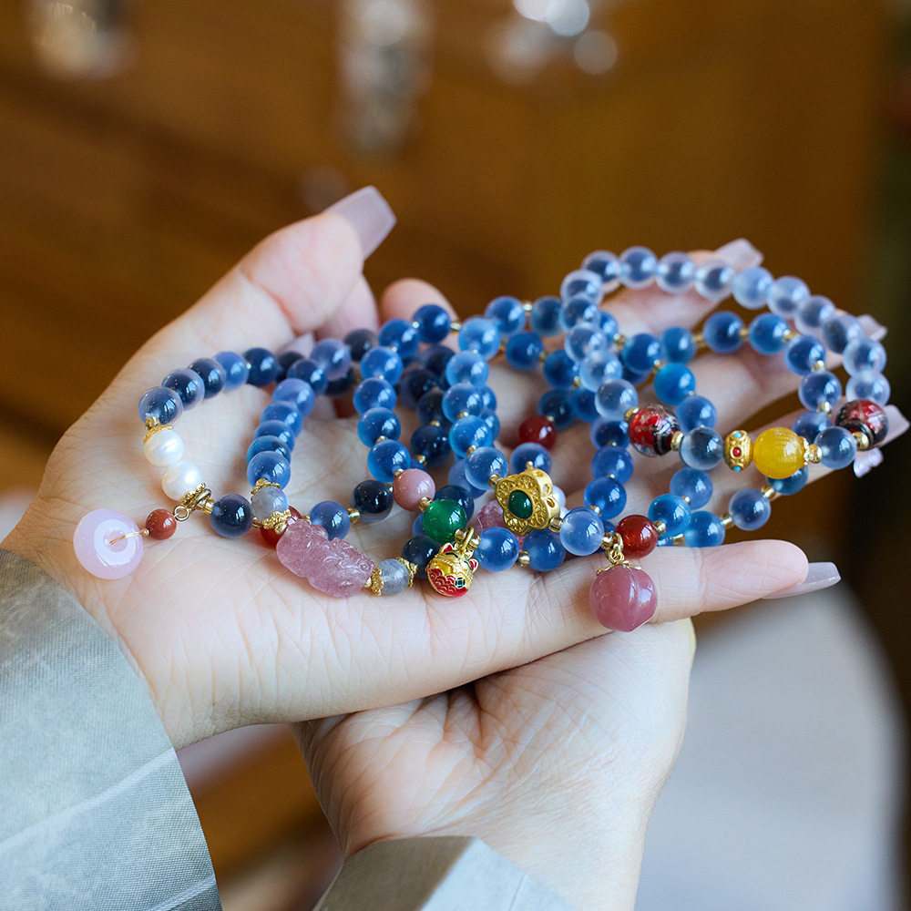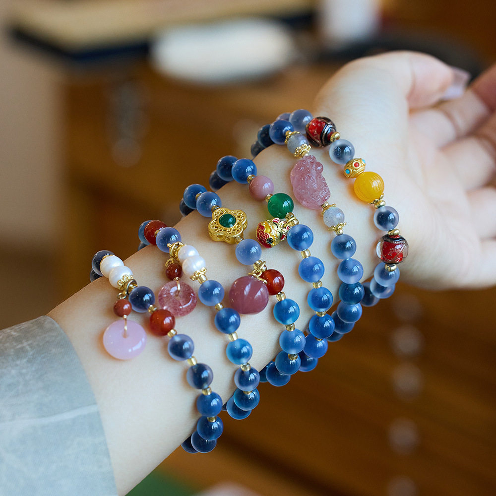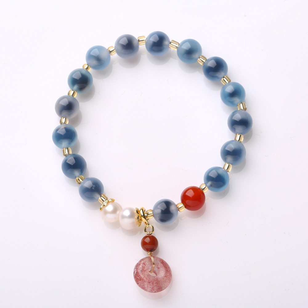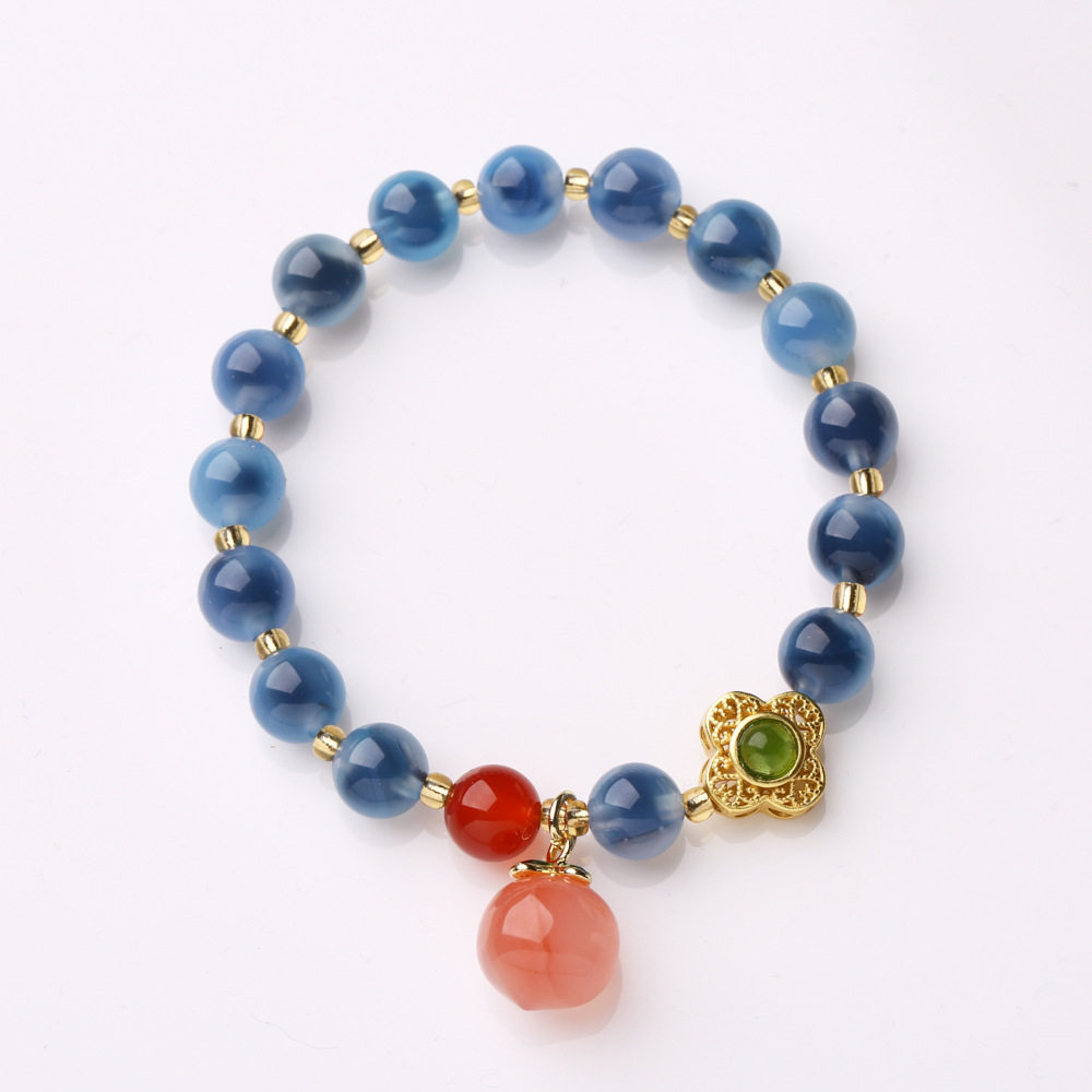 SY天然蓝色糖心玛瑙手链女四叶草溏心玛瑙复古手串手饰寺庙同款